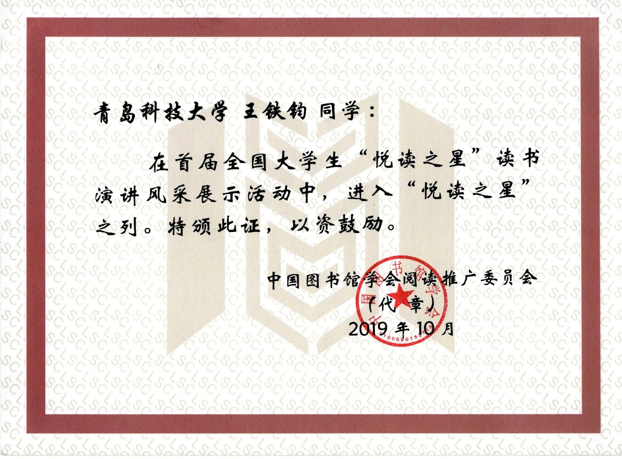 “以君之音,吟唱古今” 首届朗读者大赛冠军等。他热爱演讲朗诵,注重知识积累,不仅在专业学习上保持奋斗的青春韧劲,还在书香诵读中彰显着当代大学生的良好精神风貌。