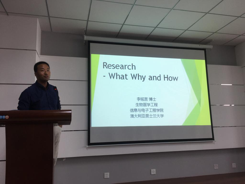 研究生做题为“Reaseach-What Why and How”学术报告。报告观点鲜明、视野开阔、主题明确、生动形象,对于进一步提升研究生的科研意识具有很强的针对性和指导性。