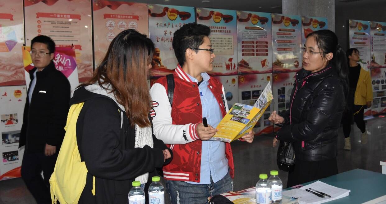 承办的潍坊市大学生就业创业“多会合一”进校园招聘会于崂山校区图书馆大厅成功举行。