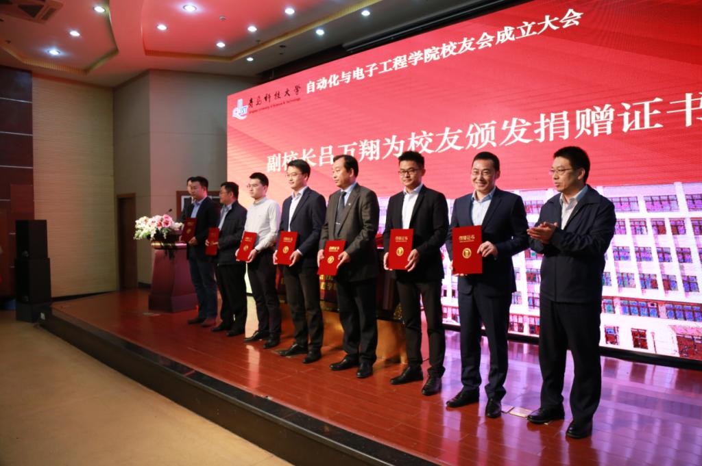 78级校友、酒泉卫星发射中心副司令员王福通少将被推选为名誉会长。副校长吕万翔为校友颁发捐赠证书。