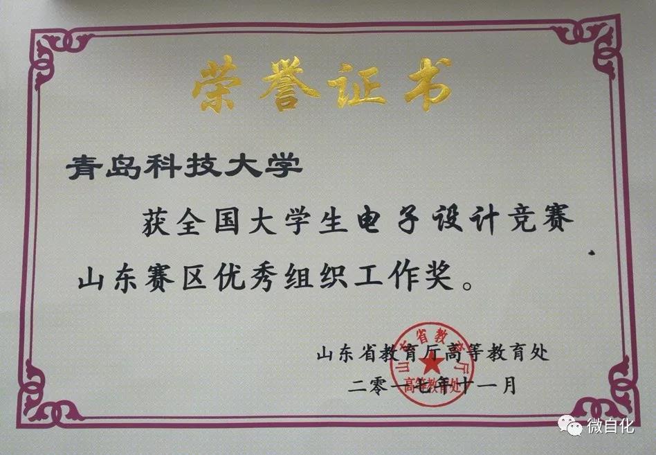 获评山东赛区优秀组织工作奖。全国大学生电子设计竞赛是教育部和工业和信息化部共同发起的大学生学科竞赛之一,在中国高等教育学会发布《2013-2017年高校创新人才培养暨学科竞赛评估结果》位居第6位。