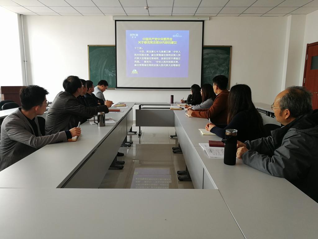 会上组织观看了“中国共产党中央委员会关于修改宪法部分内容的建议”和“中共中央政治局举行第四次集体学习”视频资料。