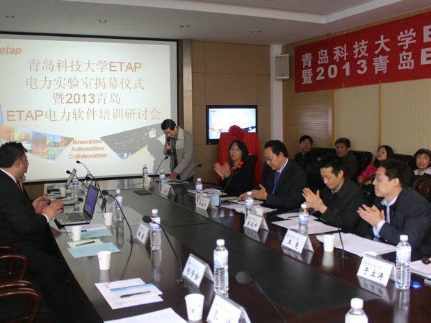 美国OTI公司ETAP商务拓展及战略发展部总经理JACQUE先生、中国区商务发展部经理何自力先生、销售经理胡俊先生、销售工程师袁风良先生、技术工程师喻飙先生以及山东省国网公司、青岛供电公司、中国石油大学、中国海洋大学等20余家单位的代表参加了揭牌仪式,揭牌仪式由北京赛车PK10