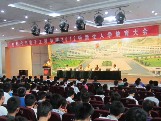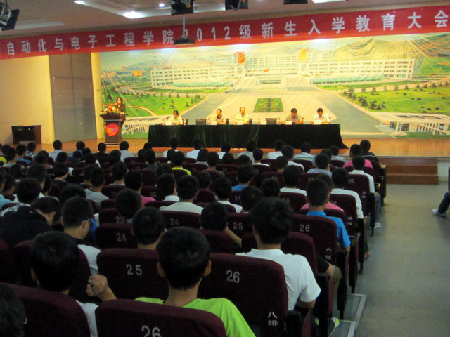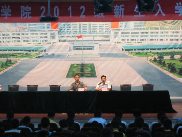 2012级新生入学教育大会在崂山校区第二报告厅举行。校工会主席兼党总支书记张景瑞、院长刘喜梅、副院长童刚、赵彤、副书记肖强、大一辅导员老师以及全体新生出席了会议,会议由分团委书记兼学工办主任王伟主持。