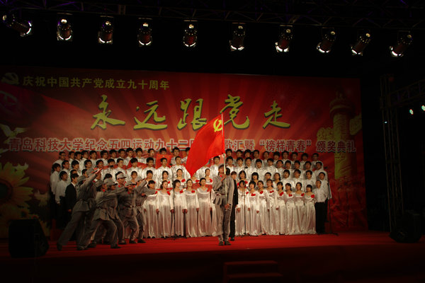 在崂山校区隆重举行了以“永远跟党走”为主题庆祝建党九十周年合唱比赛,全校17支院系合唱团参加了比赛。北京赛车PK10
