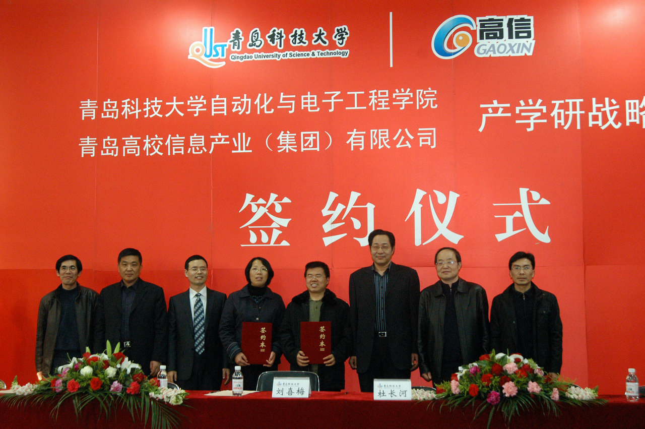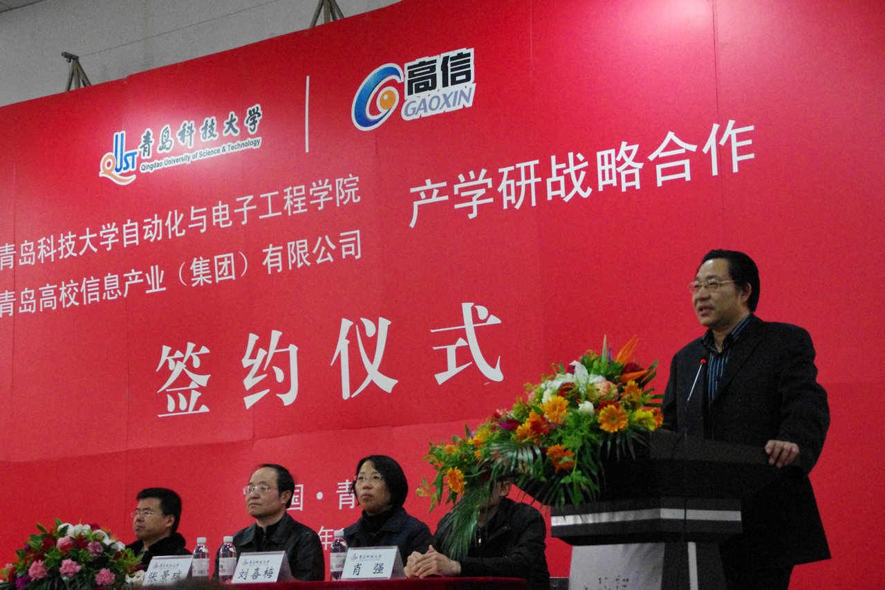 与青岛高校信息产业有限公司产学研战略合作签约仪式在四方校区讲学厅举行。校党委常委、副校长韦殿华、科技处处长郭仲聚、校工会主席兼北京赛车PK10