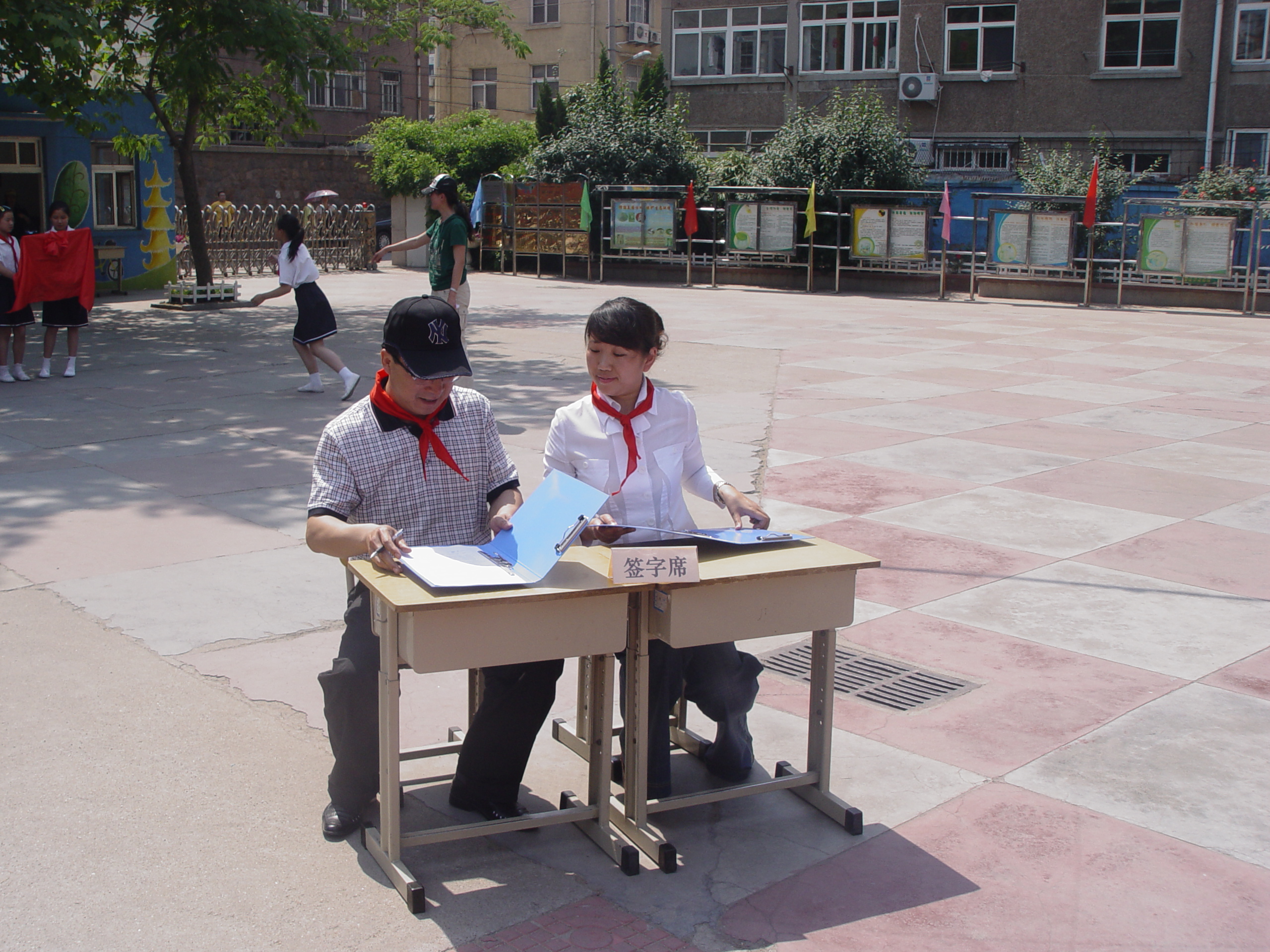 仪式按时举行,院领导受到小学生们热烈的的欢迎。院长、党总支书记王培山与洛阳路第一小学高校长签订协议,并进行揭牌。由于明天是六一儿童节,北京赛车PK10