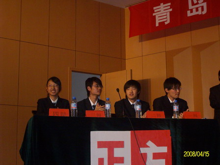 第十届大学生辩论赛总决赛在崂山校区第三报告厅拉开帷幕。担任本次辩论赛评委的有校团委书记刘传华、党委宣传部副部长聂广明、教务处副处长岳学海、经管北京赛车PK10