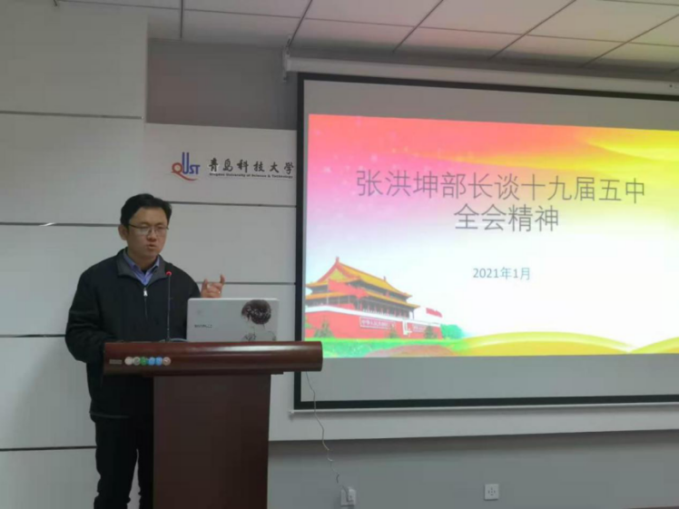 会上,张洪坤带领同学们一起学习贯彻领悟党的十九届五中全会精神,并结合自身的学习、工作、生活经历,从国际、国家、个人三个层面深入浅出地阐述作为一名大学生应当如何承担时代赋予的历史使命,鼓励同学们要抓住新时代所赋予的机遇,将个人发展融入国家发展之中,不断提高自身综合能力和素质,争做担当民族复兴大任的时代新人。最后,张洪坤就当前国内复杂严峻的疫情防控形势进行分析,提醒同学们要提高个人防范意识,做好离校防护,度过一个安全、健康、充实、祥和的假期!