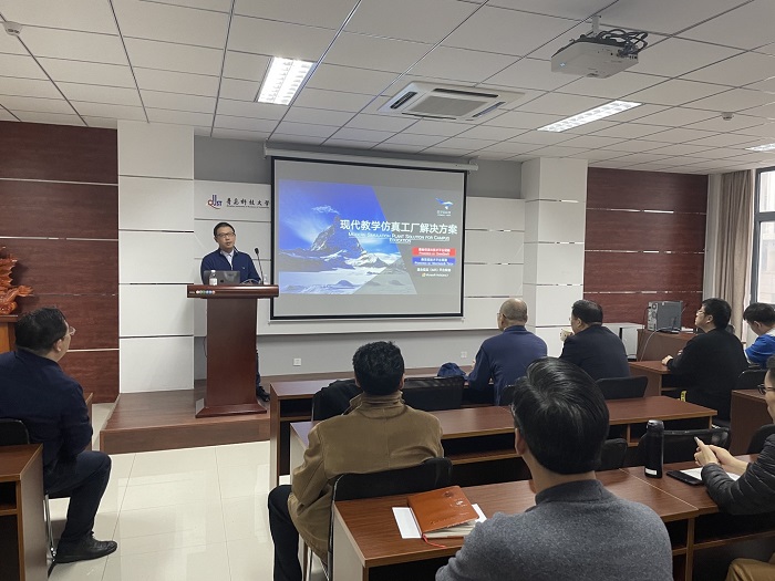 楼410会议室作了题为《现代教学仿真工厂解决方案》的学术报告。
