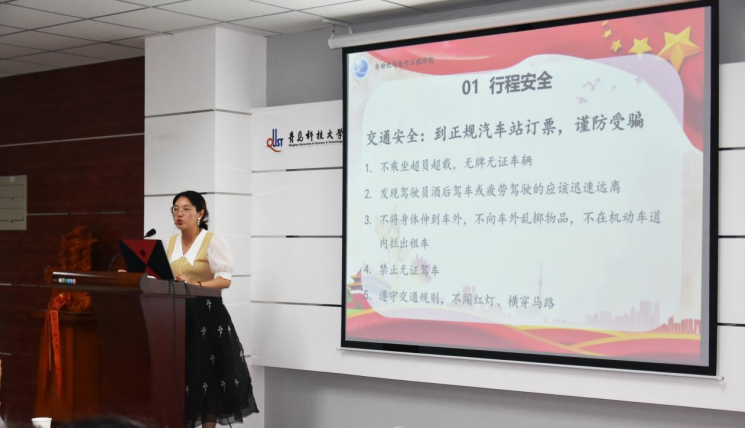 郭蒙蒙详细讲解了社会实践中需要注意的事项,并教授社会礼仪知识,同时强调社会实践应与服务中心大局相结合,将小我融入大我,展现大学生的青春风采。