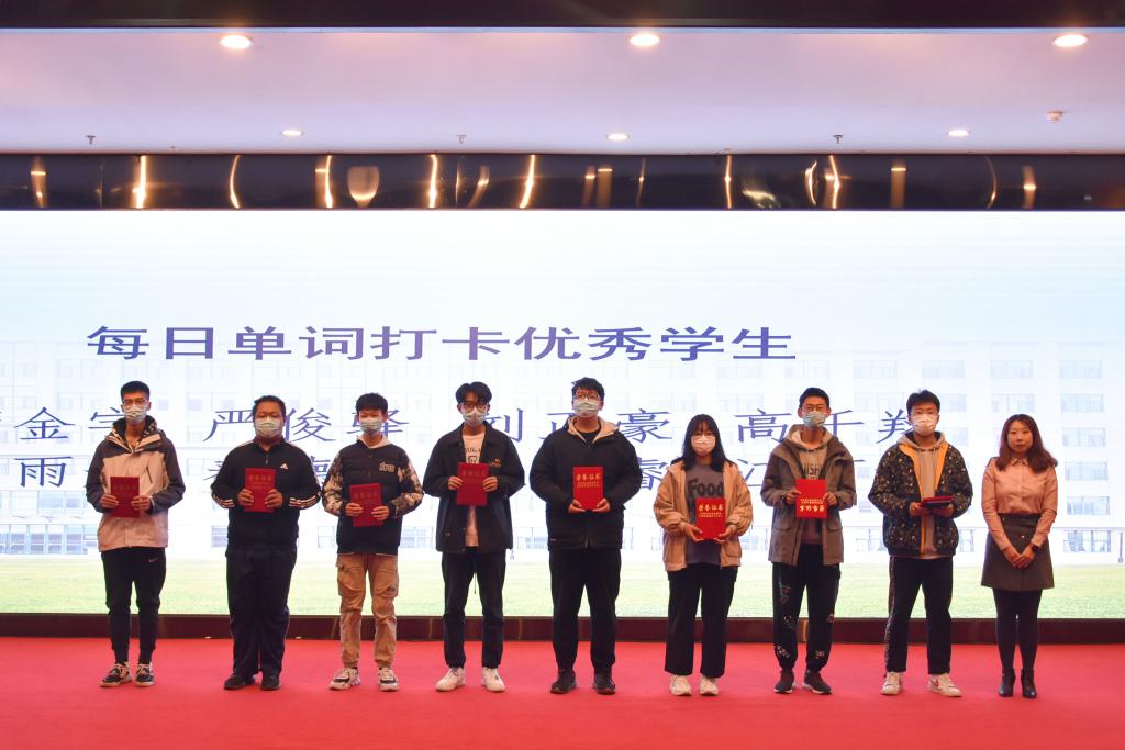 团委副书记兼学工办副主任郝雄文老师为每日30词英语单词打卡优秀同学颁奖。