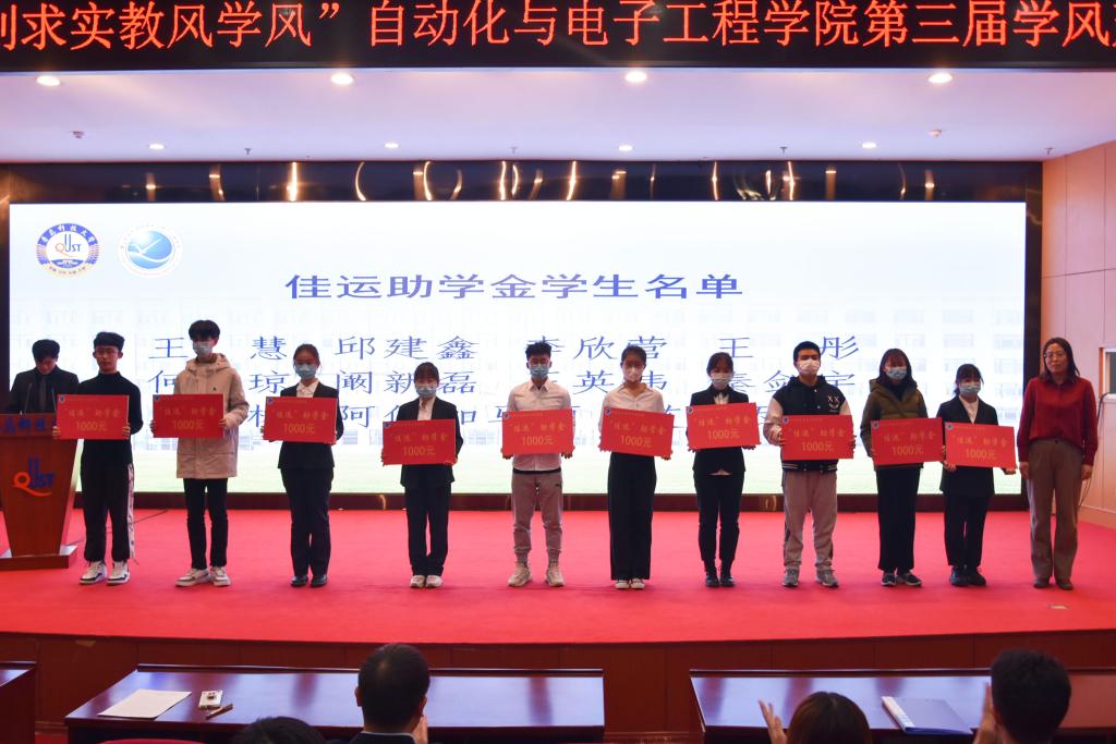 颁奖环节,团委书记兼学工办主任郭蒙蒙老师为获得“佳运助学金”的学生颁奖。