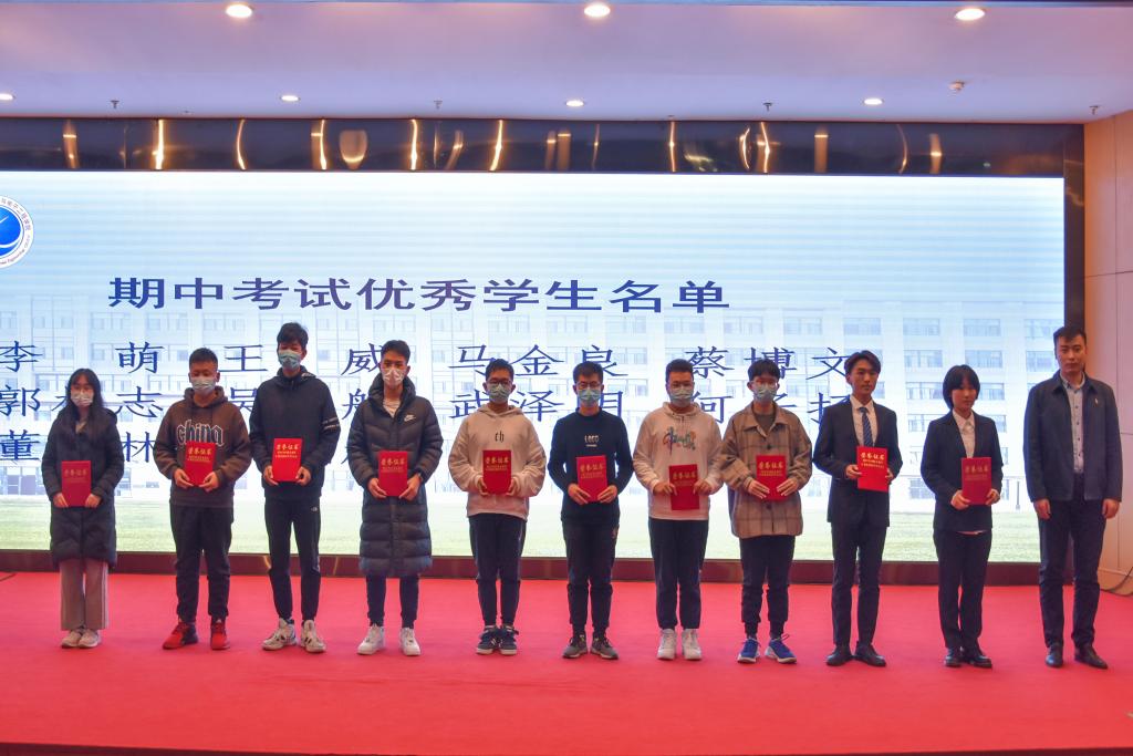 团委副书记兼学工办副主任于彬老师为期中考试优秀同学颁奖。