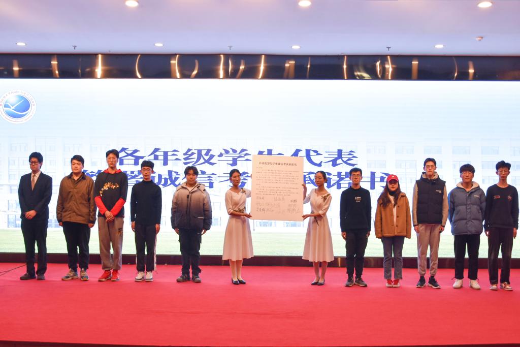 闭幕式最后,各年级优秀学生代表上台在诚信考试承诺书上签字,号召全北京赛车PK10