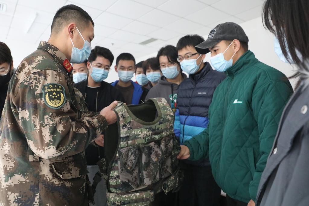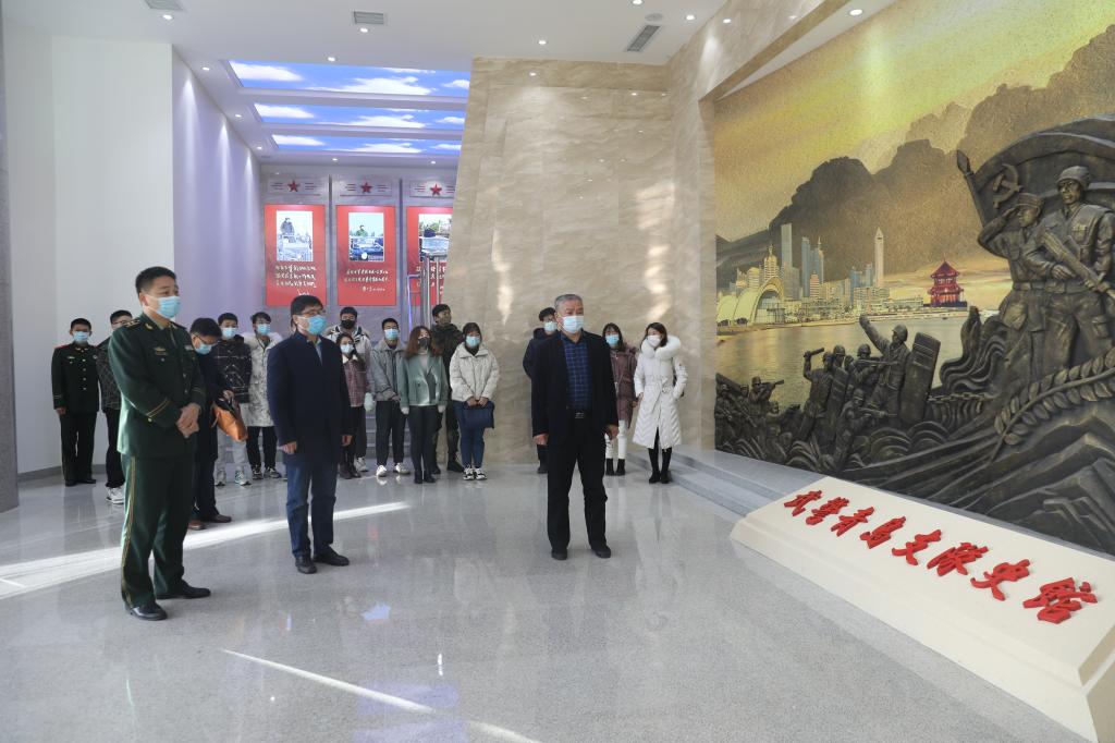 师生共同参观武警青岛支队队史馆,深入了解学习支队的历史沿革、战斗历程及英雄事迹。通过观看支队重大任务纪实片,在场师生对武警部队担负的使命任务、基层官兵练兵备战情况、基层建设成就有了更为直观的认识。反恐心理训练室的模拟场景体验,让大家亲身感受到高度紧张的实战氛围,赞叹武警官兵遂行反恐战斗的过硬心理素质和高超实战能力。