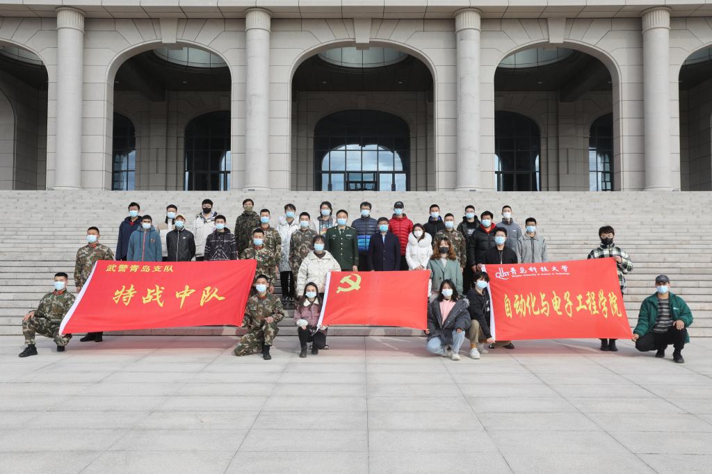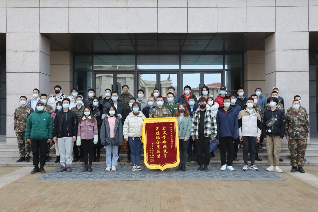 党委副书记兼副院长马寒,团委副书记兼学工办副主任郝雄文,团委老师张郁浩、赵赪赪及各年级学生代表赴武警青岛支队进行军营体验。