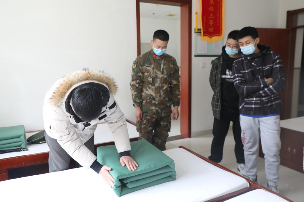 随后,某中队战士们的舞龙舞狮表演以新颖的编排、灵活的动作、默契的配合,充分展现了团队合作精神和活力军营文化,让师生感受了部队文化育人、文化建队氛围。中队指导员带领师生们参观了荣誉室、党员之家、官兵营房,介绍了部队政治思想、党建工作的开展情况,展示官兵们作战装备、内务设置及日常生活,生动讲述军人生活中的趣事。同学们在支队官兵的手把手教授下,纷纷动手体验叠军被、整理内务,深入体会整齐划一、严格有序的军人作风。