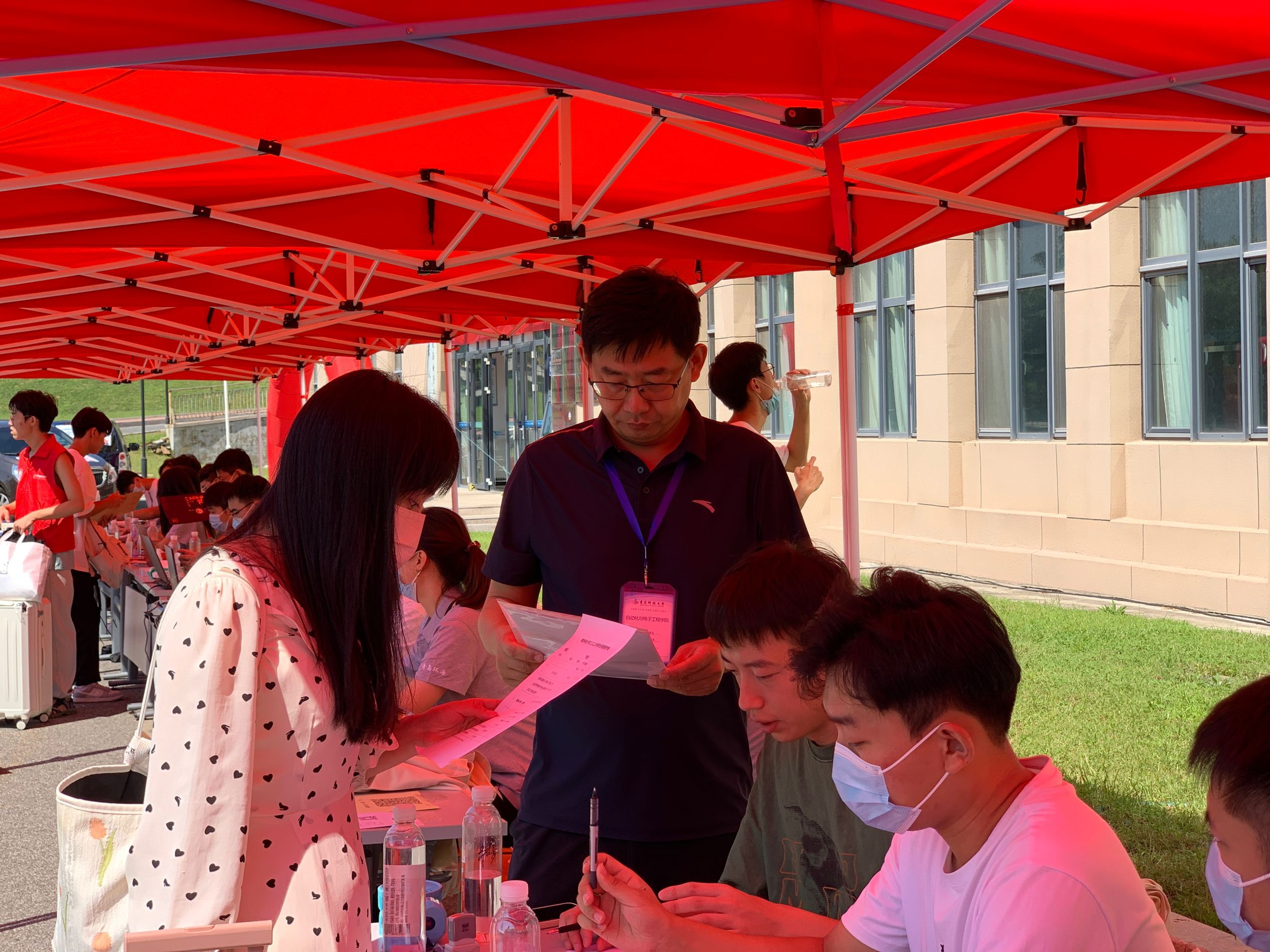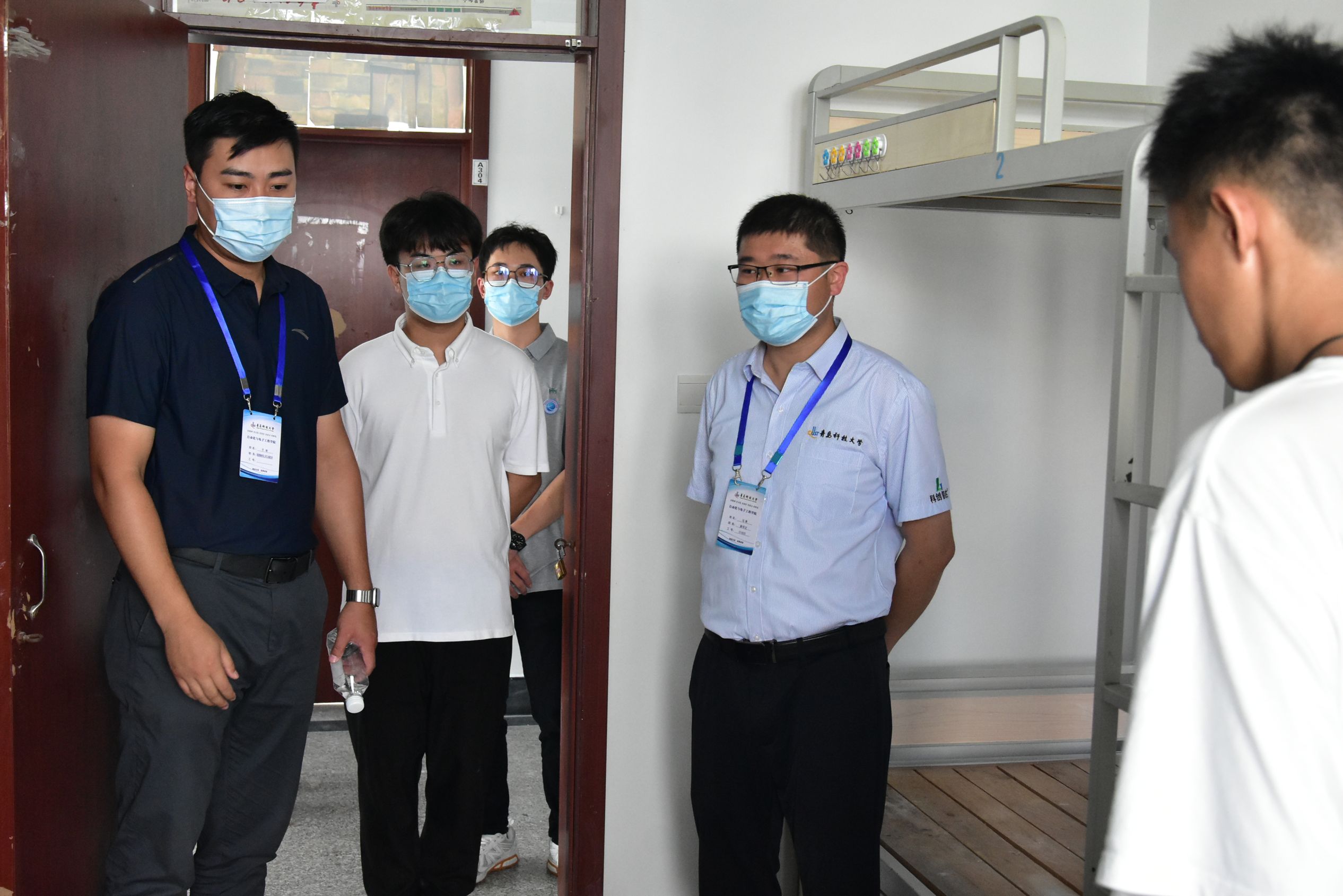 领导走访迎新现场、深入学生宿舍指导迎新工作,了解相关报到流程及工作开展情况,亲切关怀新生及现场志愿者。