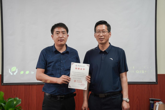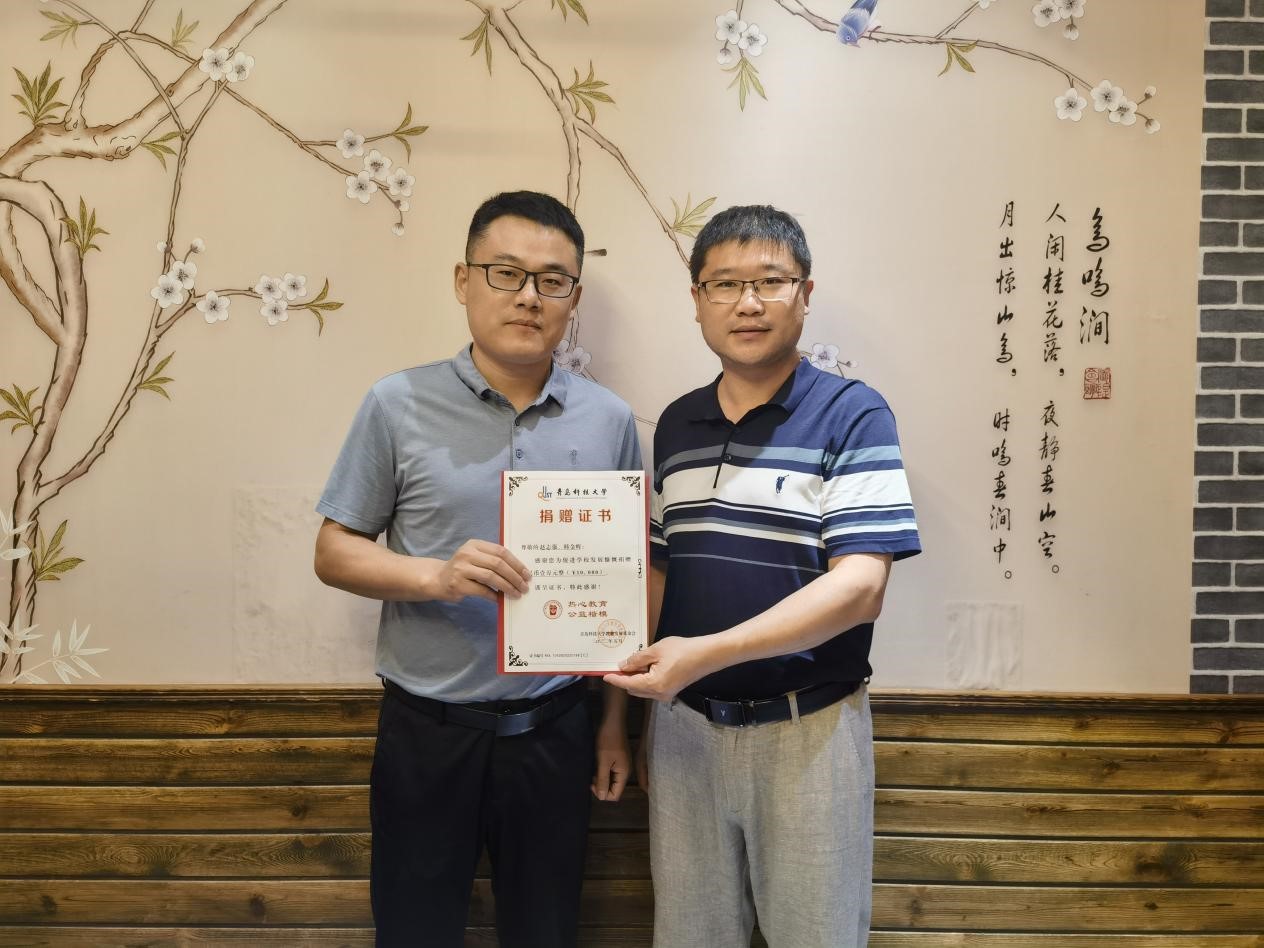 马寒为测控03级校友赵志强、韩金辉颁发捐赠证书