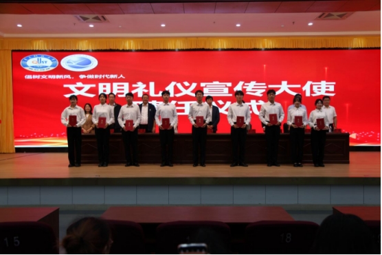 校园文明宣传大使颁发聘书,学生会主席团成员李雨泽宣读了《北京赛车PK10