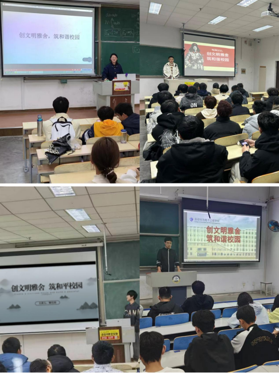 以班级为单位组织开展“创文明雅舍,筑和谐校园”主题班会,针对学生宿舍中出现的不文明行为和现象展开主题讨论,通过本次活动的开展,同学们积极主动地去关注宿舍文化建设,共同打造和谐温馨的宿舍环境。会后组织各班学习“自”家宿舍文明公约明白纸,了解环境卫生标准并安排宿舍值日排班表,同学们纷纷表示,要共同维护宿舍环境,见贤思齐,倡树文明新风,争做时代新人。