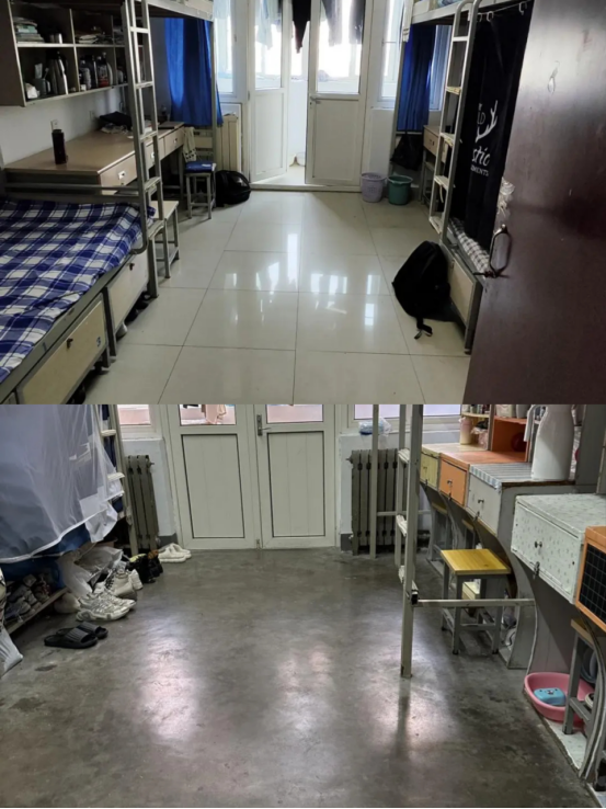 融媒体平台展播。经过自查自改,同学们的宿舍环境有了明显的改变,从门口到阳台,物品摆放井然有序。