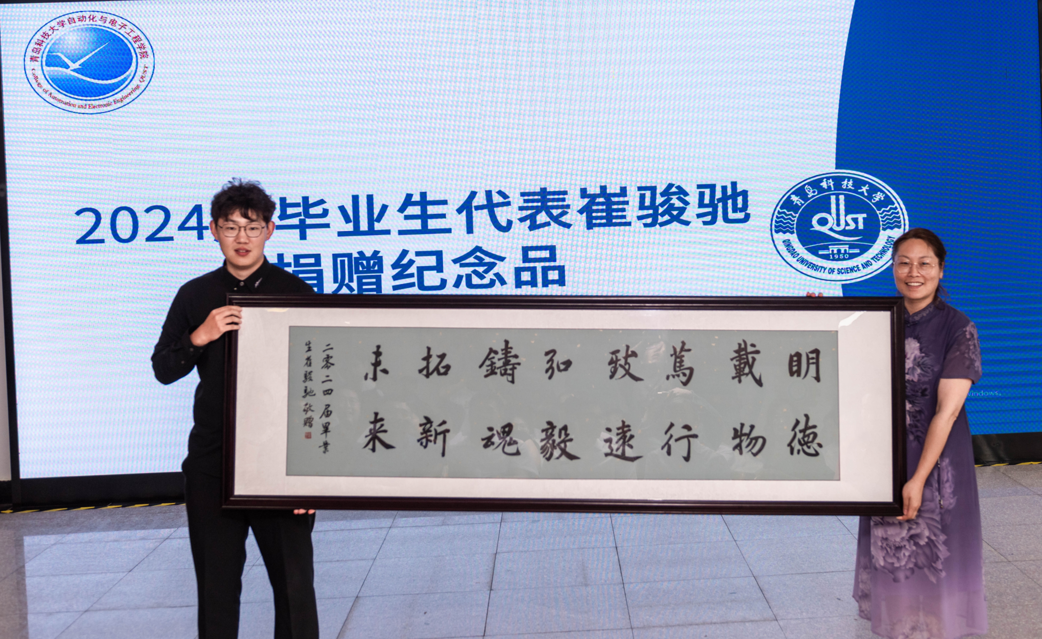 接受了2024届毕业生代表崔骏驰捐赠的书法纪念品。巩敦卫在致辞中向2024届毕业生送上祝贺与祝福,向在一线教学、后勤保障等育人岗位上默默付出的教职工们表示敬意和诚挚感谢。巩敦卫以“三个希望”作与毕业生的“临别叮嘱”:一是空谈误国、实干兴邦。希望同学们立足本职岗位,在急难险重新任务中挺身而出,积极投身中国式现代化建设,在科技创新、乡村振兴、绿色发展、社会服务、卫国戍边等各方面建功立业;二是永葆初心、清澈纯粹。希望“自”家学子们继续发扬科大精神、践行橡胶品格,从大处着眼、难处用劲,始终保持北京赛车PK10