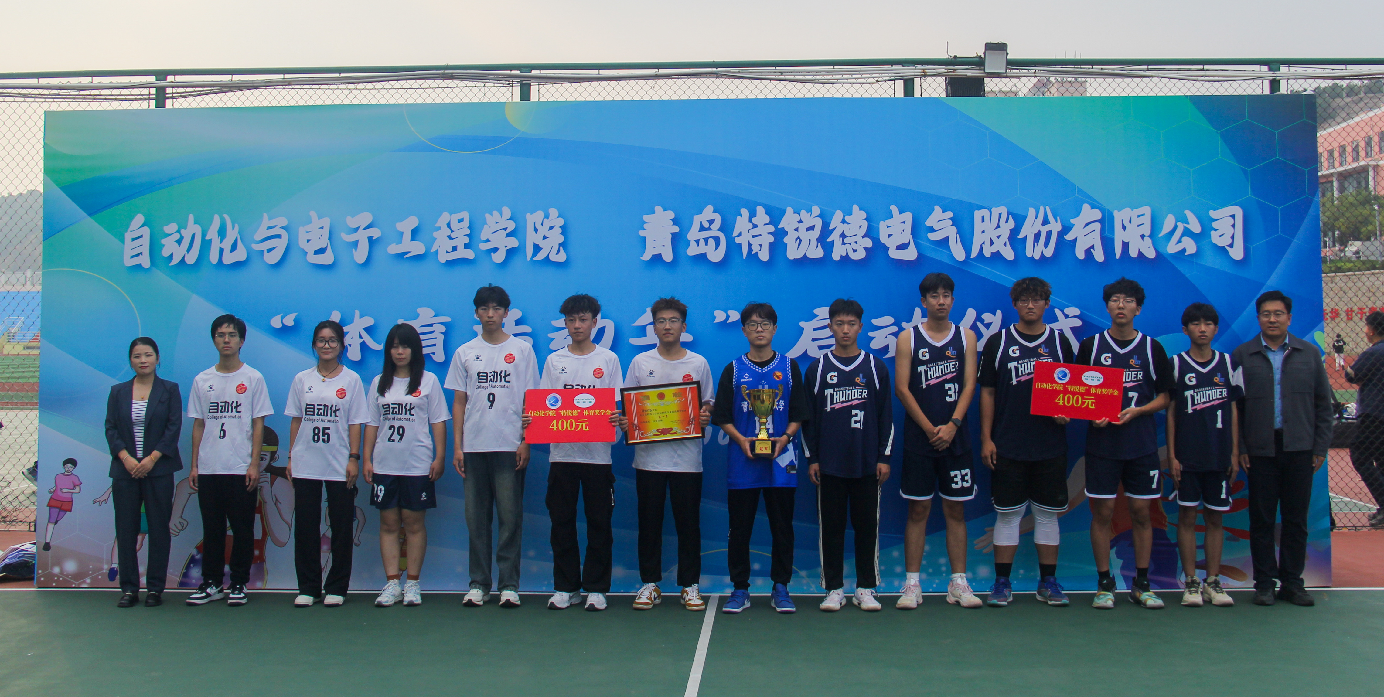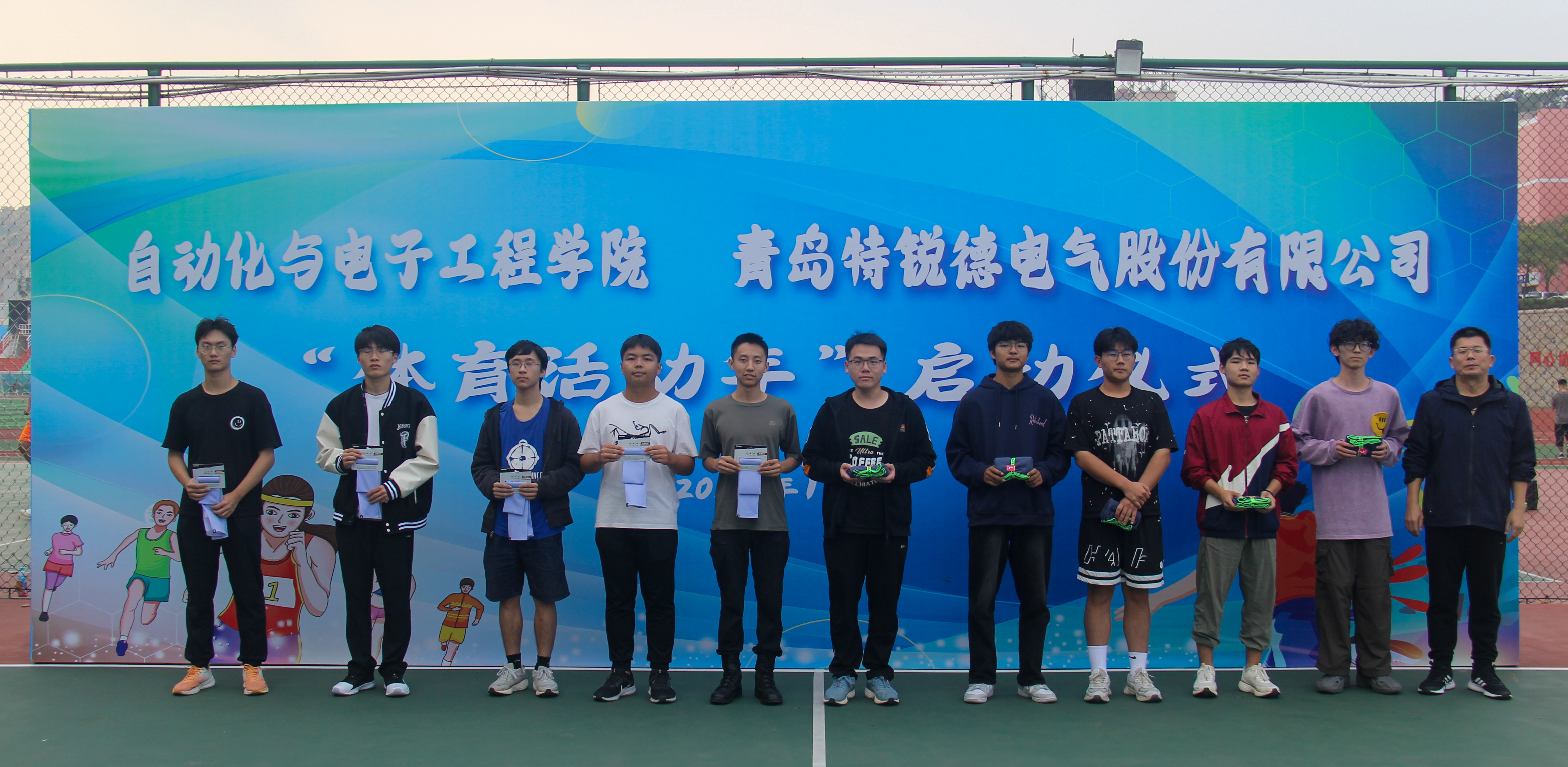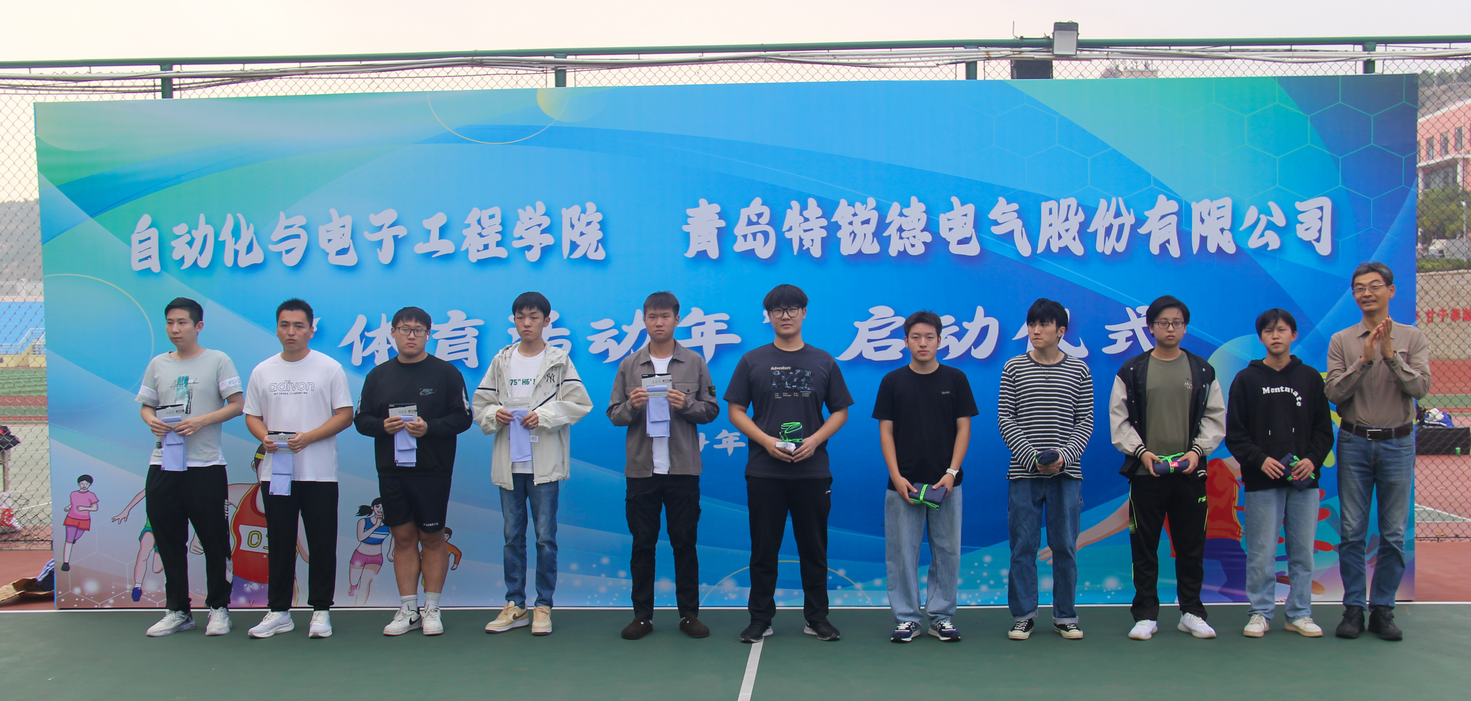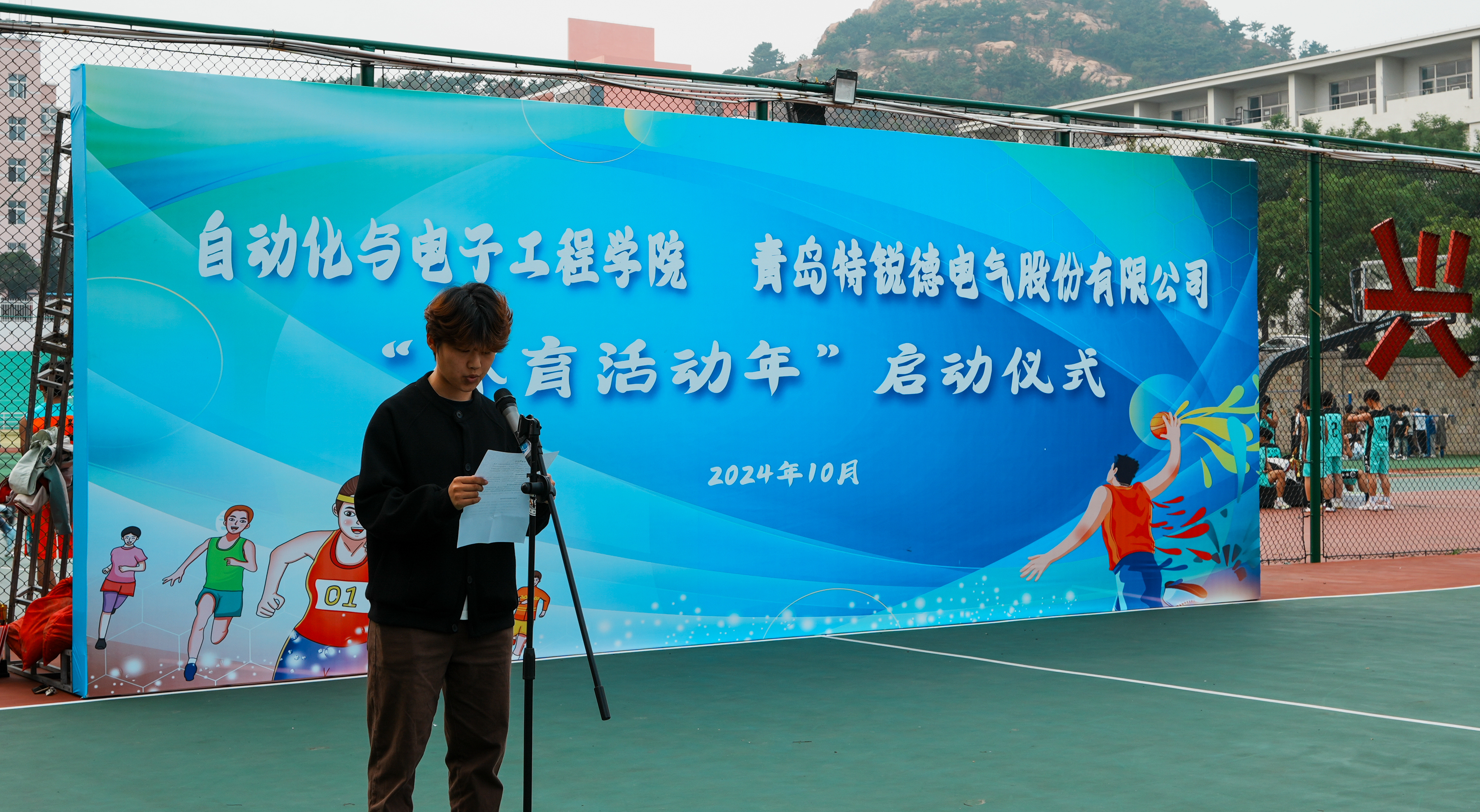 各类赛事安排,涵盖了“特锐德杯”联赛赛事、“爱体育”健康跑、“AI活力”四项素质锻炼、“知行”运动会四个建设项目。2023级电气工程及其自动化专业一班丁宁宣读《关于在全院学子中开展体育健身运动的倡议书》,号召全体同学积极参与到体育锻炼中来,共同营造健康向上的校园文化氛围。仪式最后,领导与老师投篮比赛点燃现场,气氛热烈。随后,校企篮球友谊赛激烈上演,“青春力量”“青春速度”比赛同步进行。
