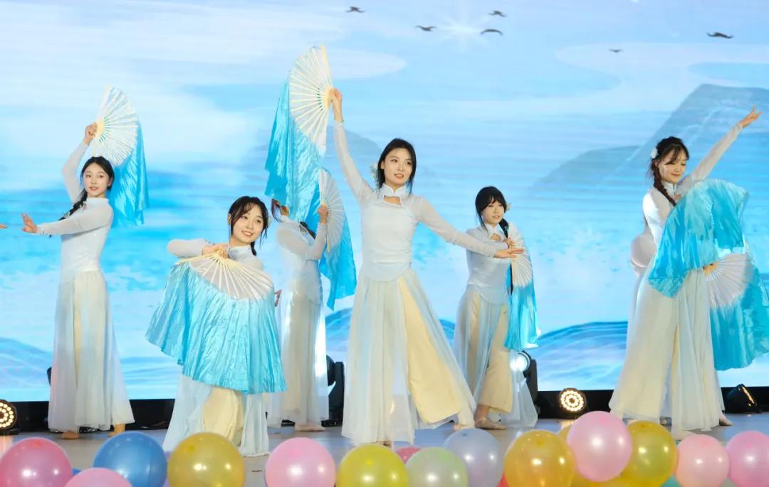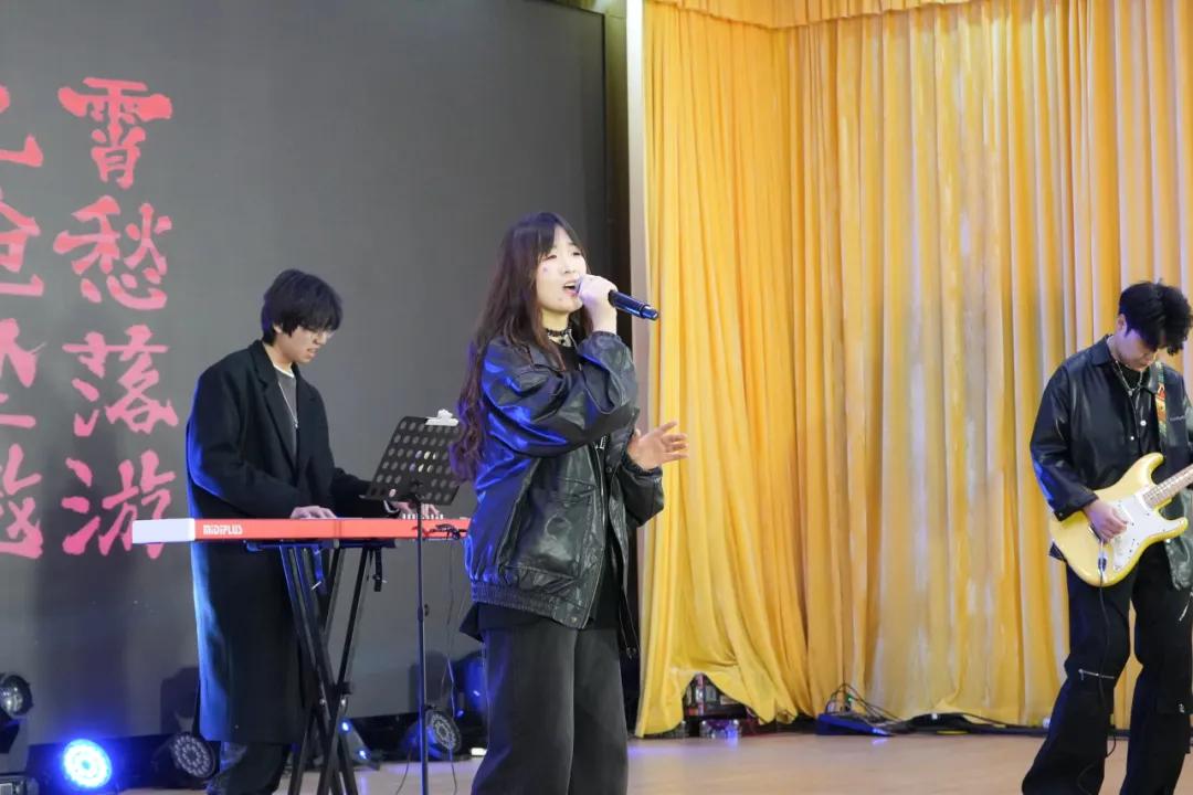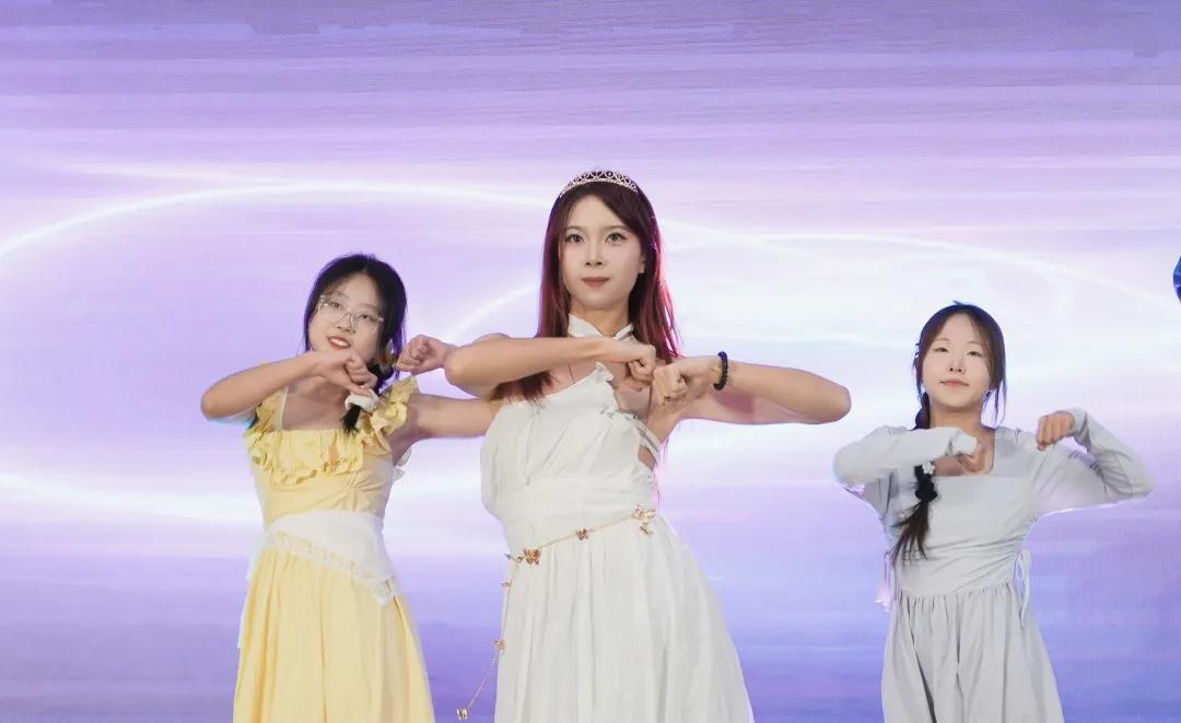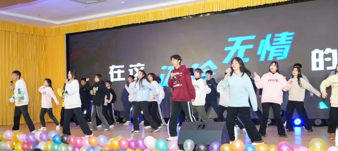 举楫间展望未来浪潮,笔尖上划出崭新可能。第三篇章在飘飘衣袂中滑进舞台,汉服加身如龙跃,风华尽显福自来,汉服走秀闪耀登场,表演者们轻抚衣袖间流转的风华,再现往日盛唐的辉煌;听,歌曲串烧节目来了,一首首歌唱出拼搏精神,唱出青春活力,唱出意气风发,也唱出激情与奉献。大古典舞《谪居》以其宁静优雅的姿态,展现了一种超越时代的美。古典舞的美,温柔始终有光;最后一个节目由团委老师带来歌曲《相亲相爱》,歌声中流露出真挚的感情,用温馨的旋律和歌词表达了对同学们的美好祝愿。迎新晚会也在这温馨的歌声中到了尾声。
