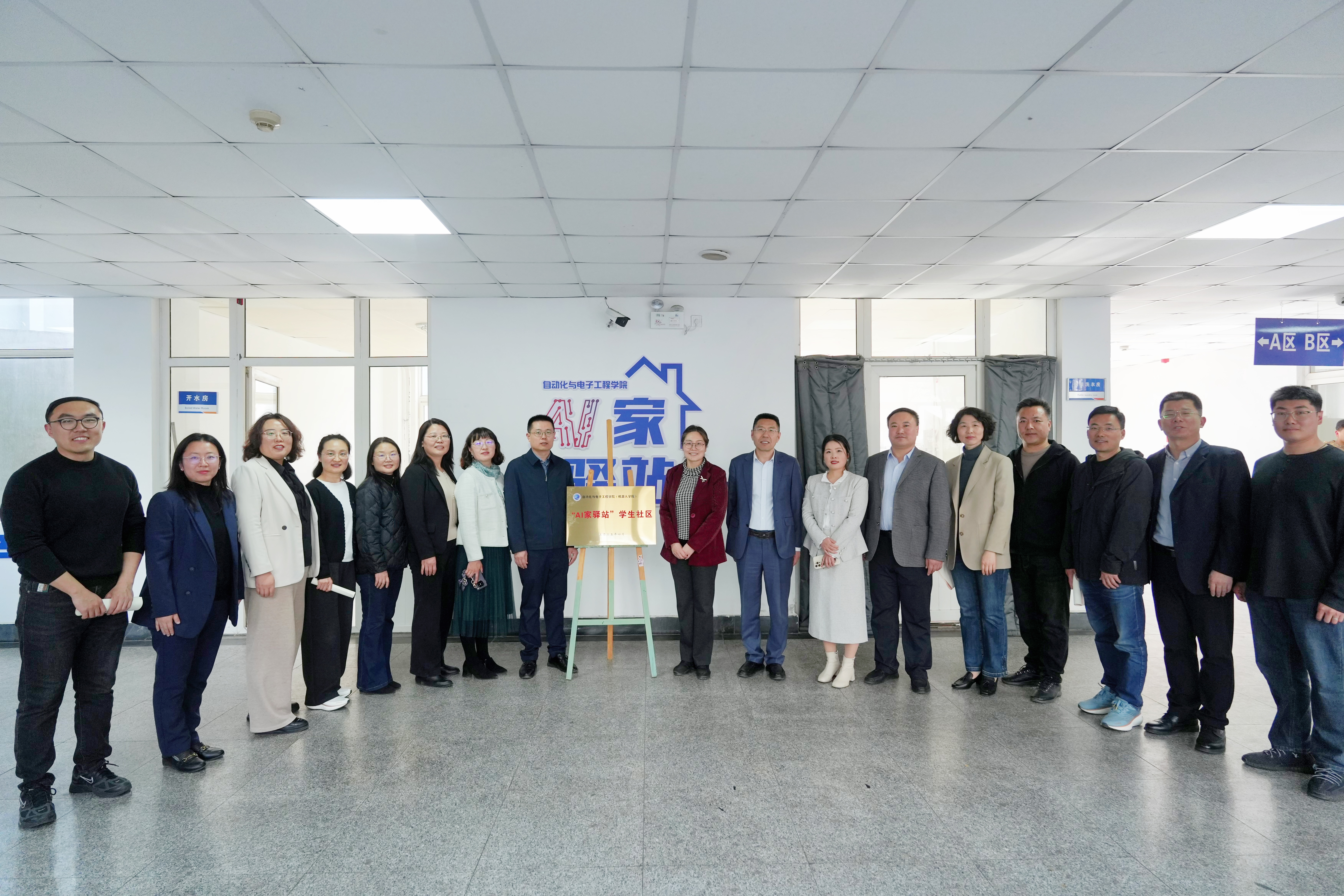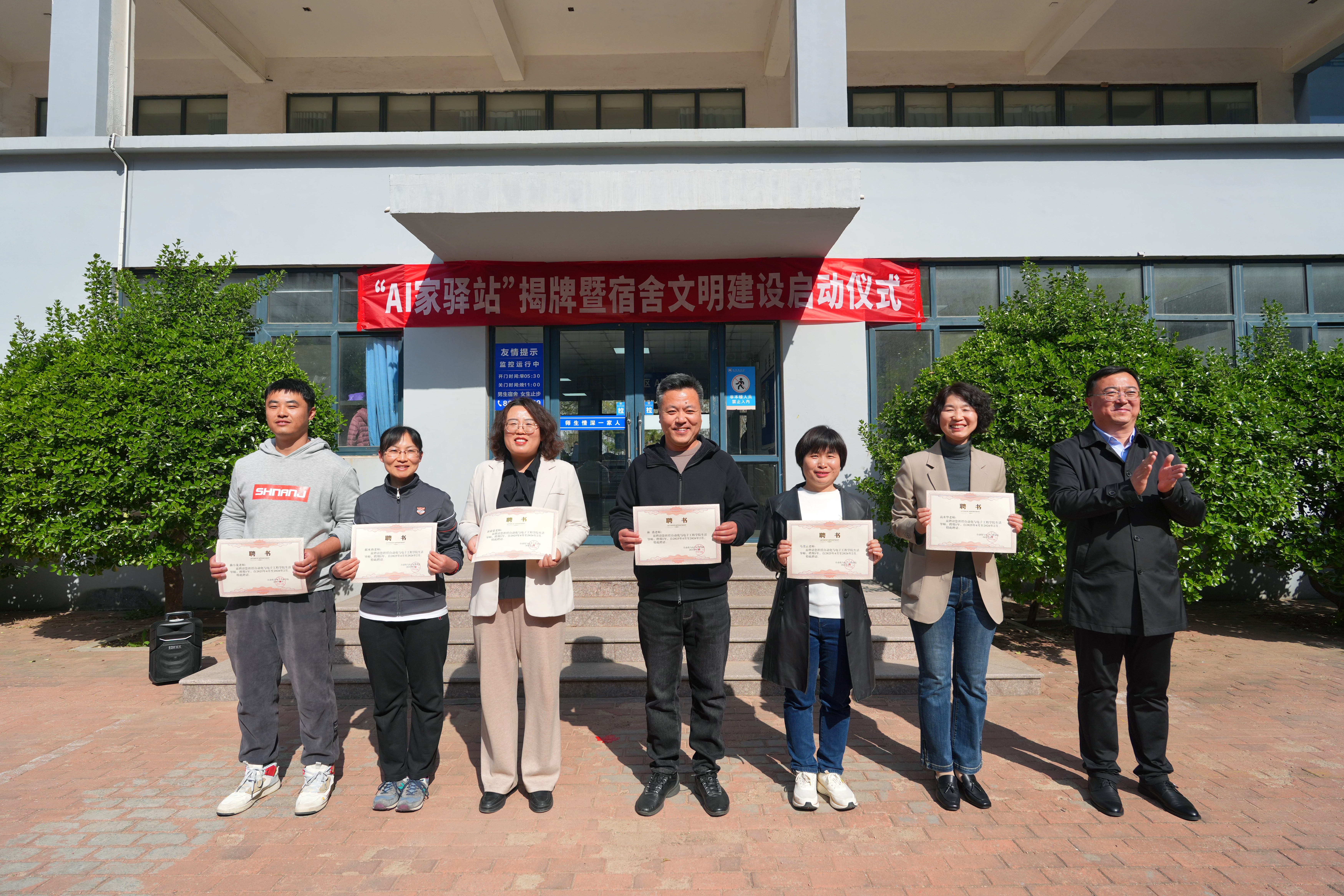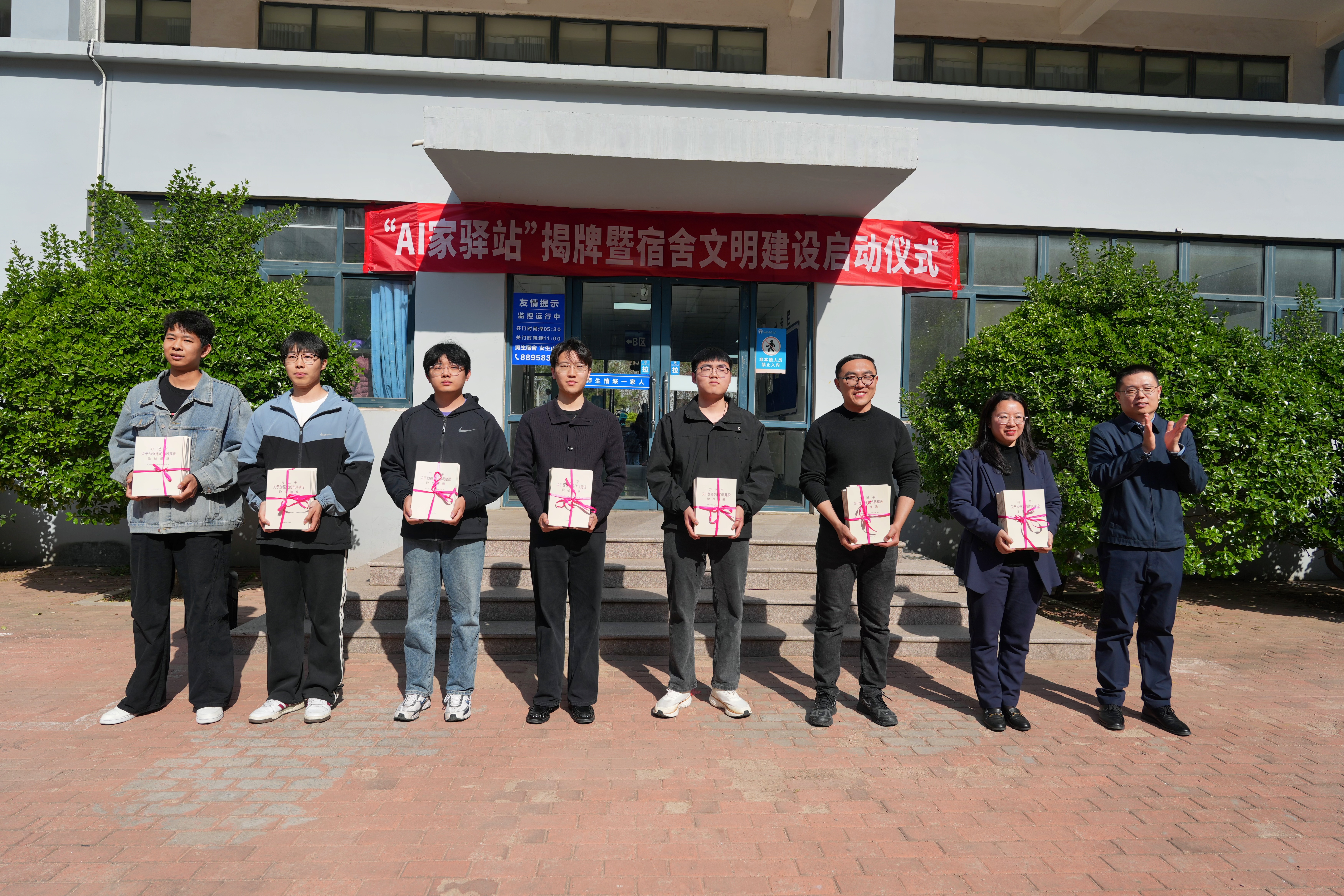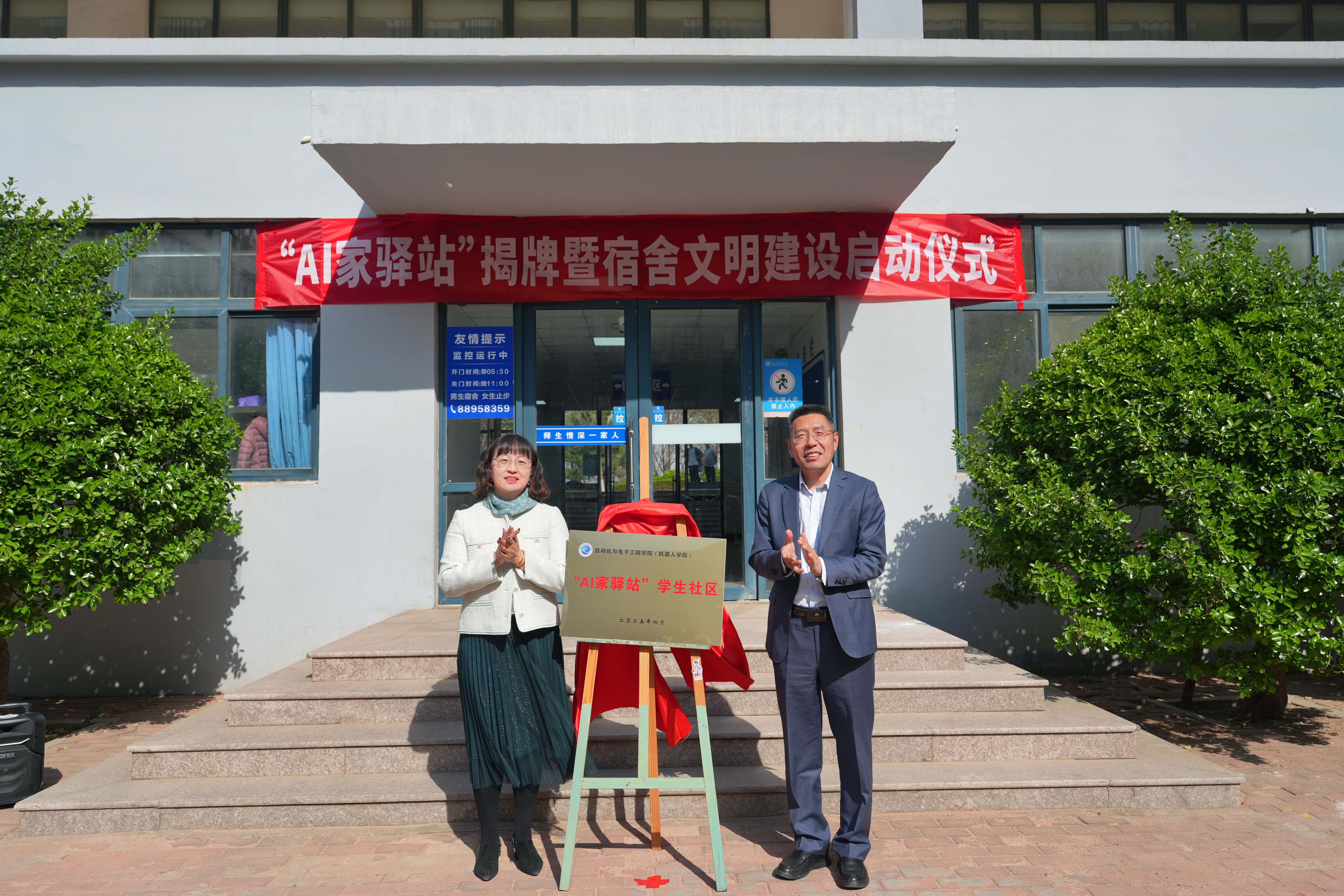 在崂山校区北七宿舍楼广场举行“AI家驿站”揭牌仪式。校党委常委、组织部部长朱敬义,校学生处处长王丽,校后勤处处长匡荣富,北京赛车PK10