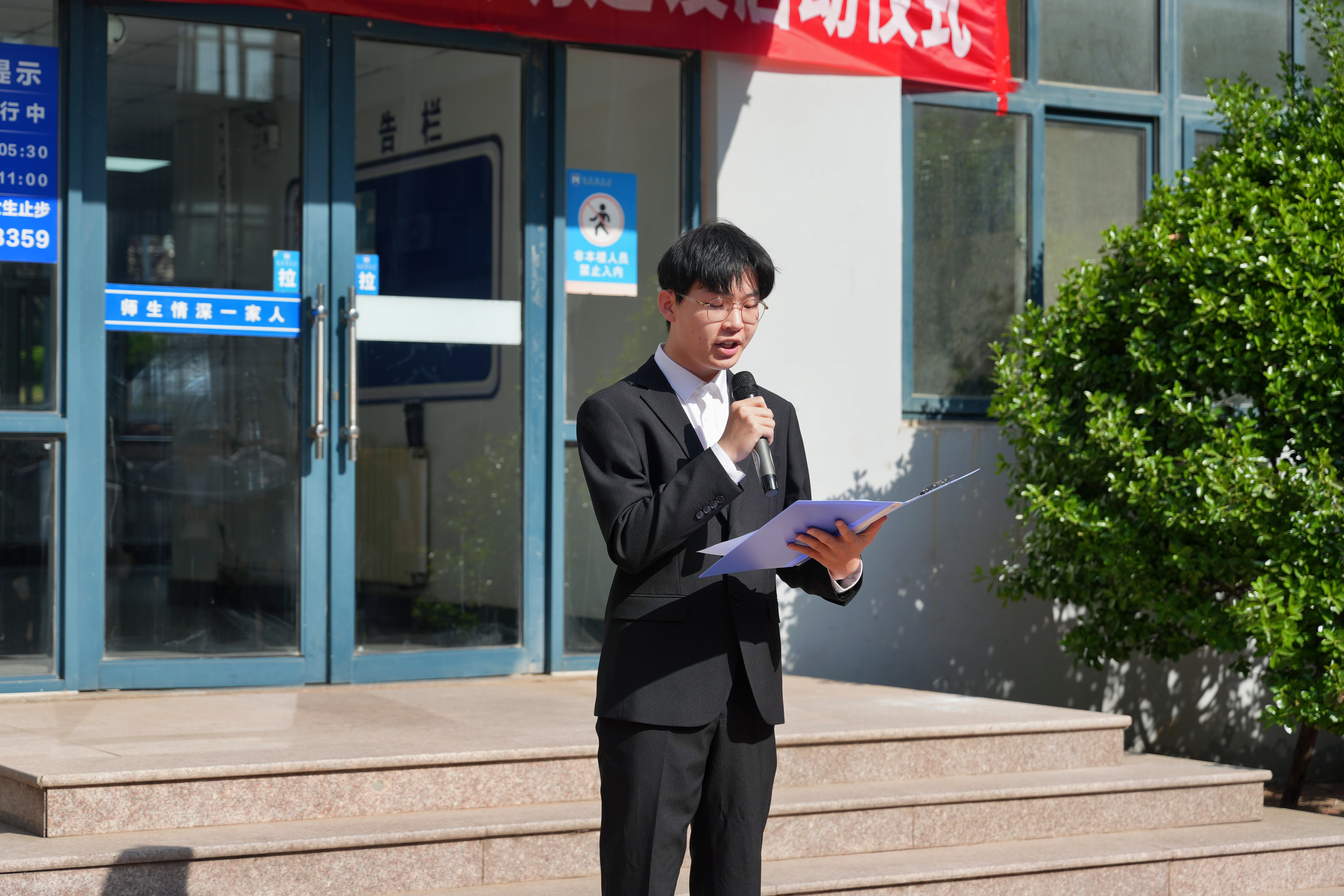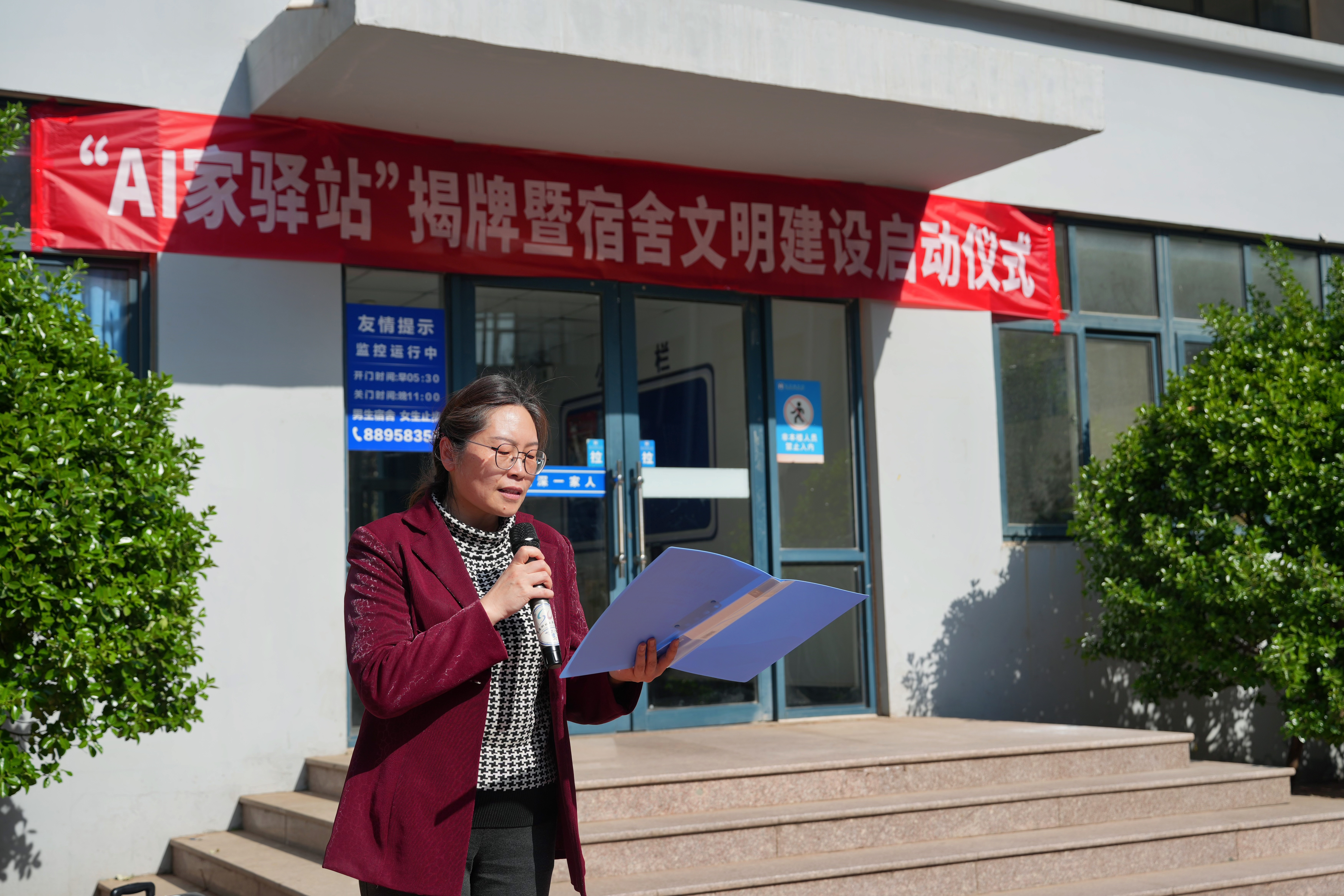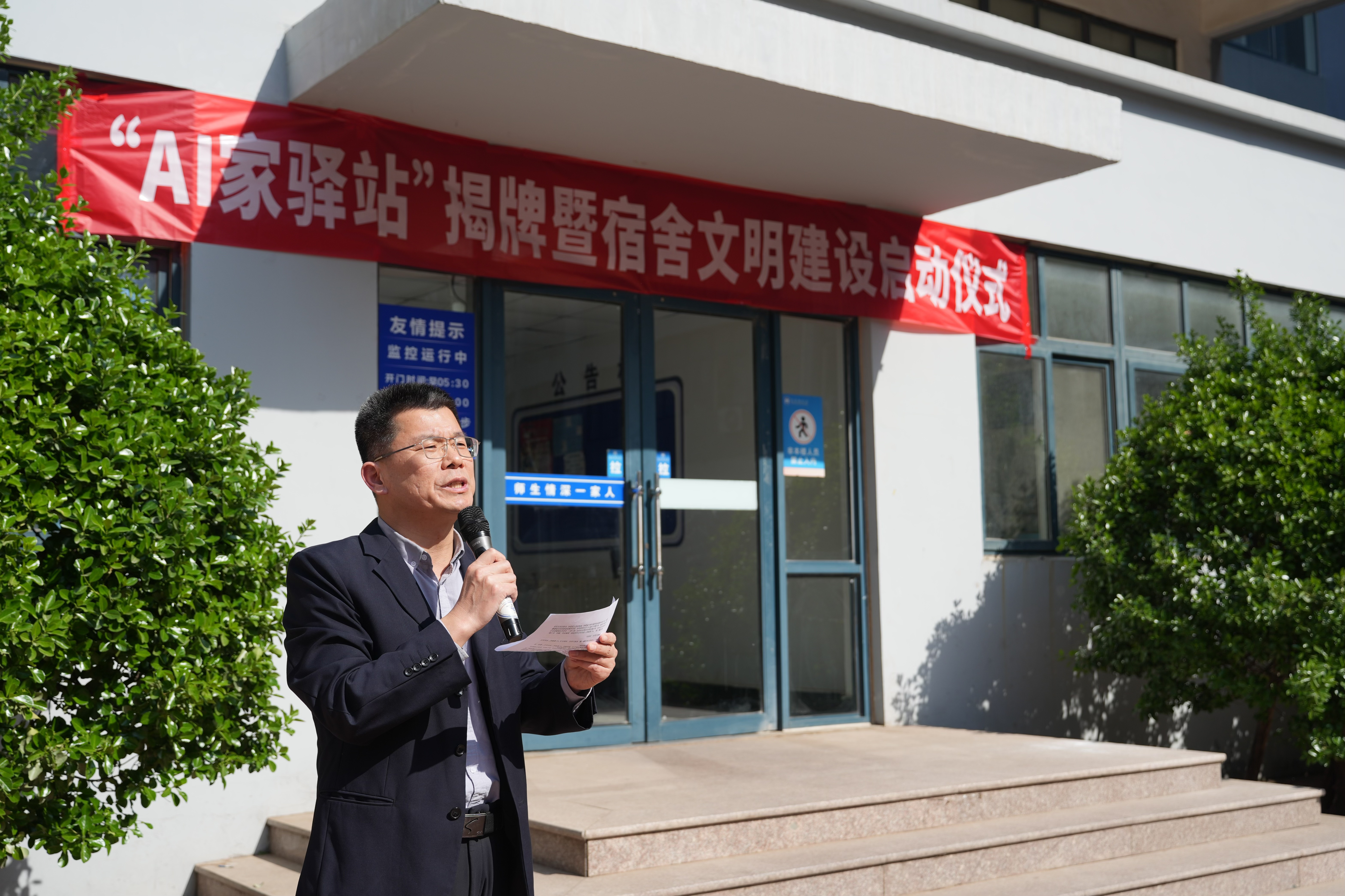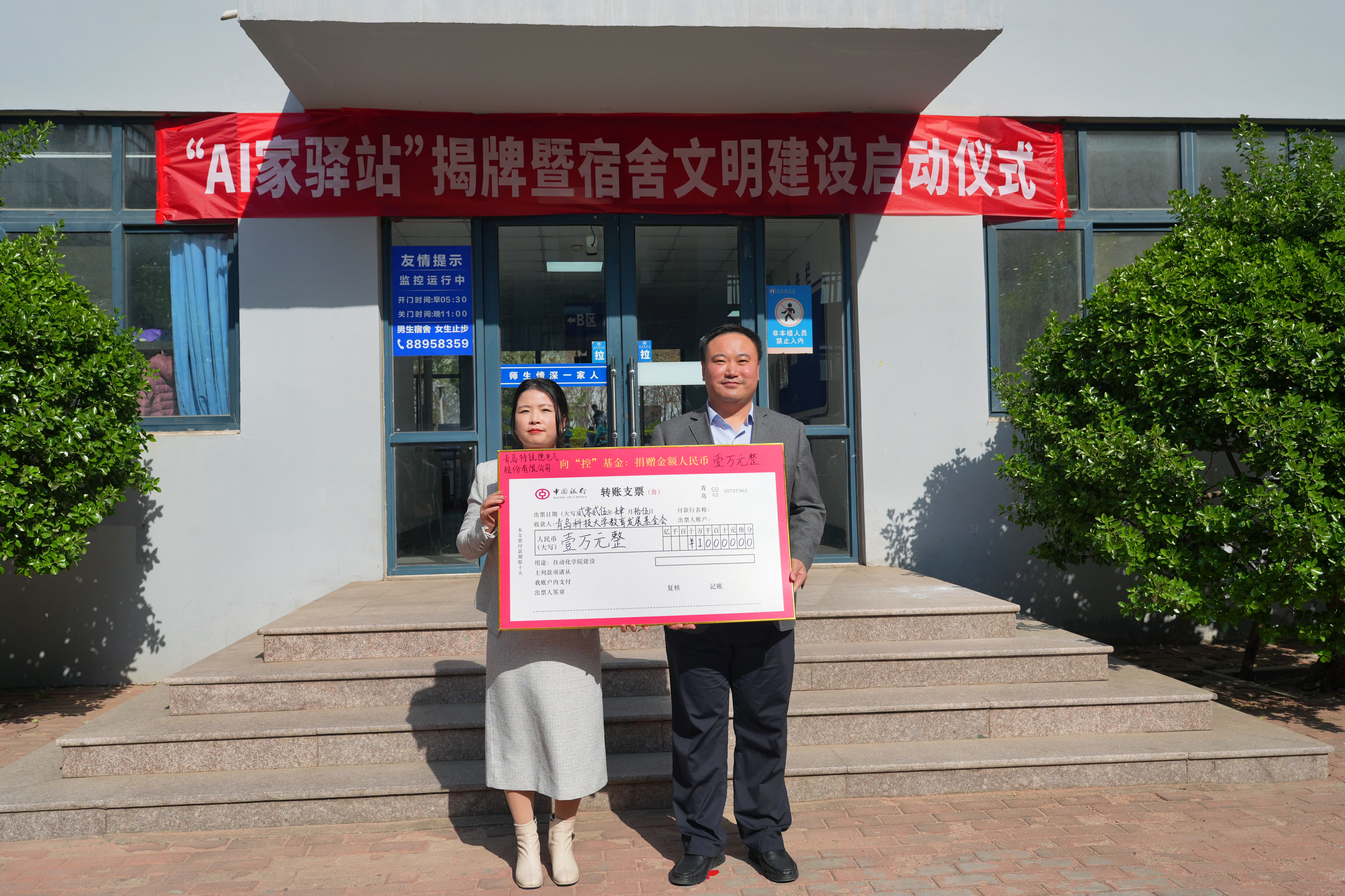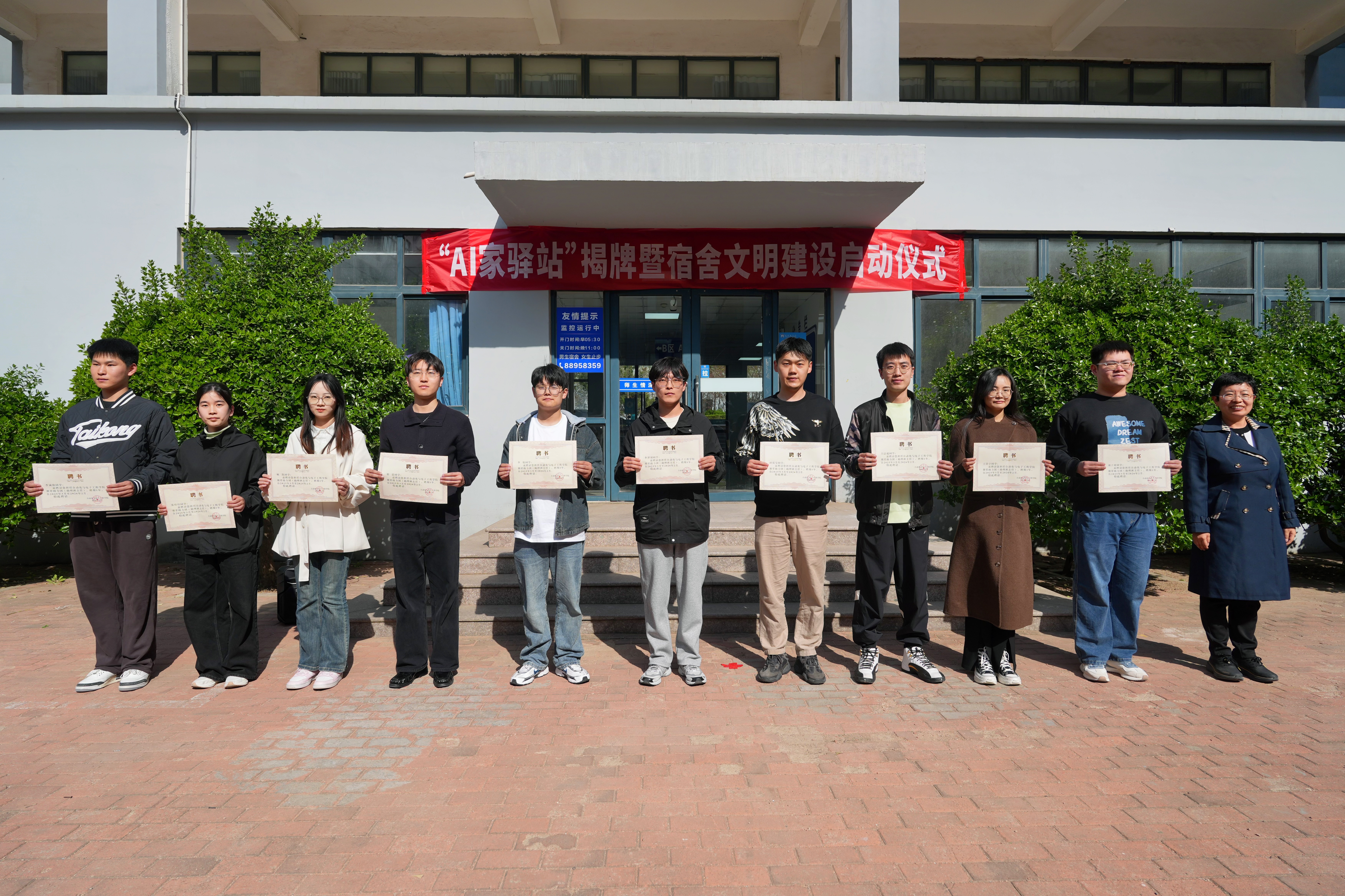 在崂山校区北七宿舍楼广场举行“AI家驿站”揭牌仪式。校党委常委、组织部部长朱敬义,校学生处处长王丽,校后勤处处长匡荣富,北京赛车PK10