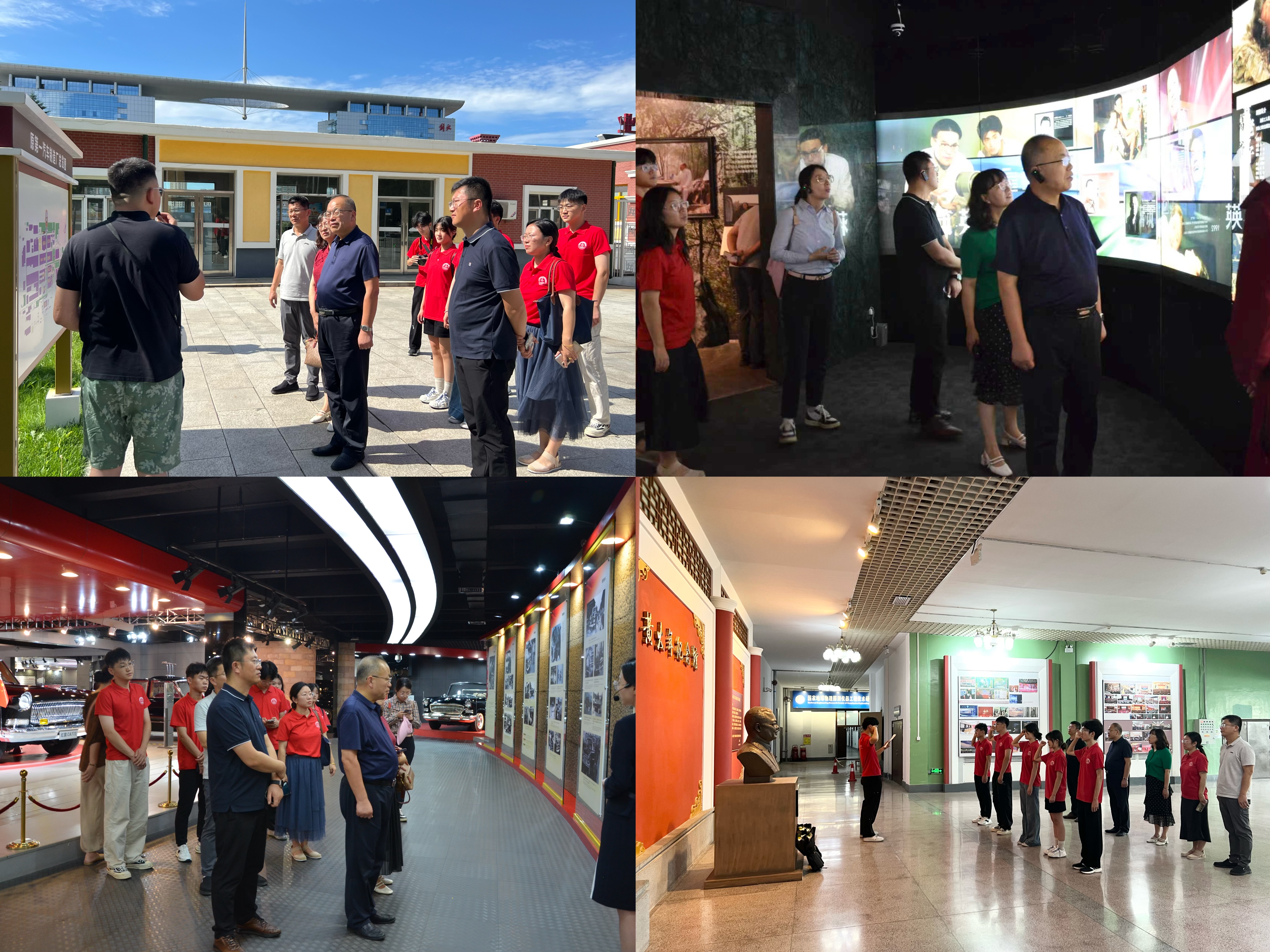 向黄大年教授铜像敬献鲜花,全体成员于铜像前庄严宣誓,承诺自觉肩负科技报国使命。在东北沦陷史陈列馆,通过珍贵文物、历史影像与场景复原,系统回顾东北十四年抗战历程,强化“国家富强、民族复兴”的责任意识;在长春历史文化博物馆,队员们系统了解长春历史沿革、重大事件及英雄人物事迹,厚植红色基因;于长影旧址博物馆,通过老式摄影机、摄影棚等文物回溯中国电影事业发展脉络,感受老一辈文艺工作者的时代担当。