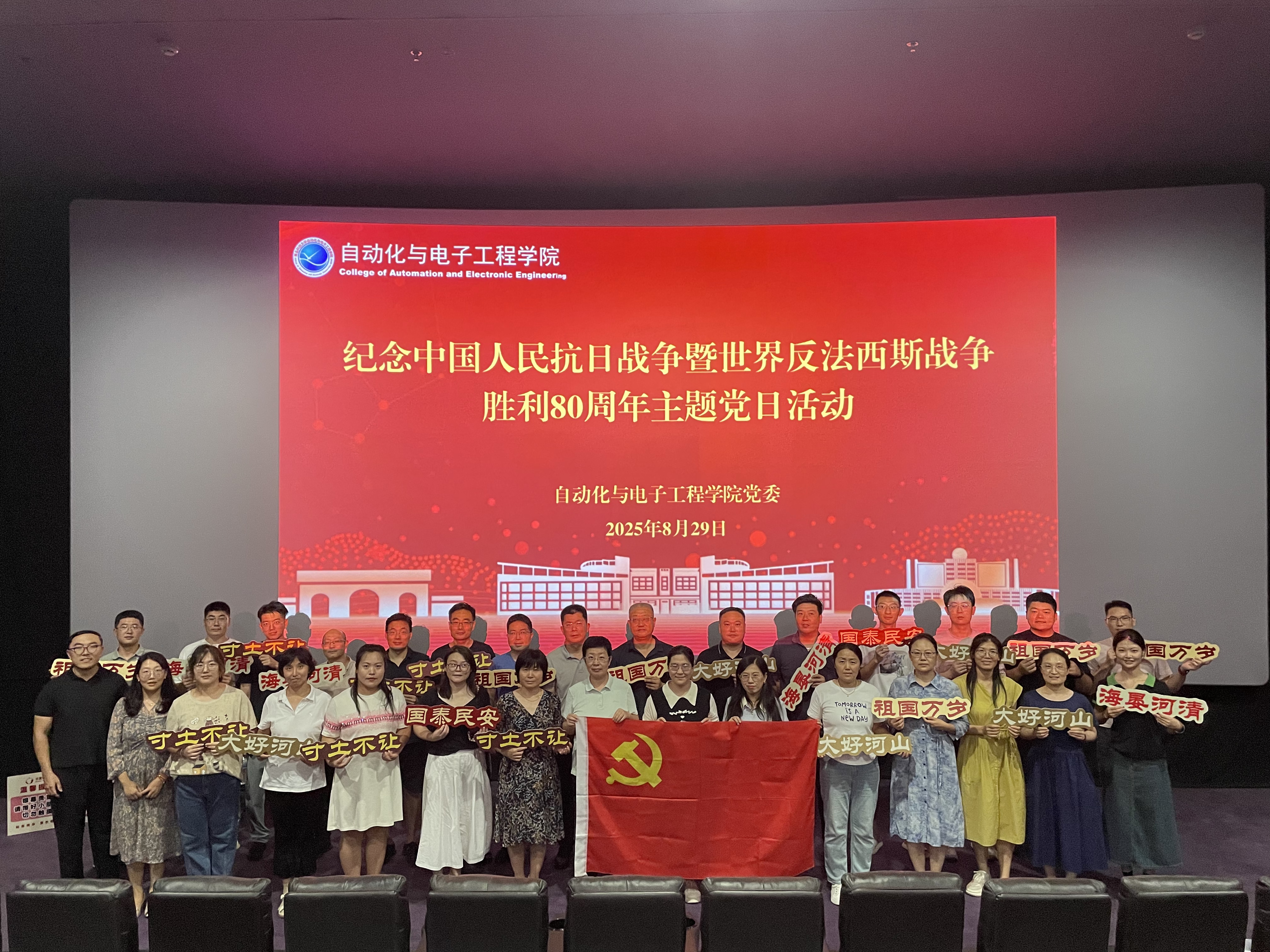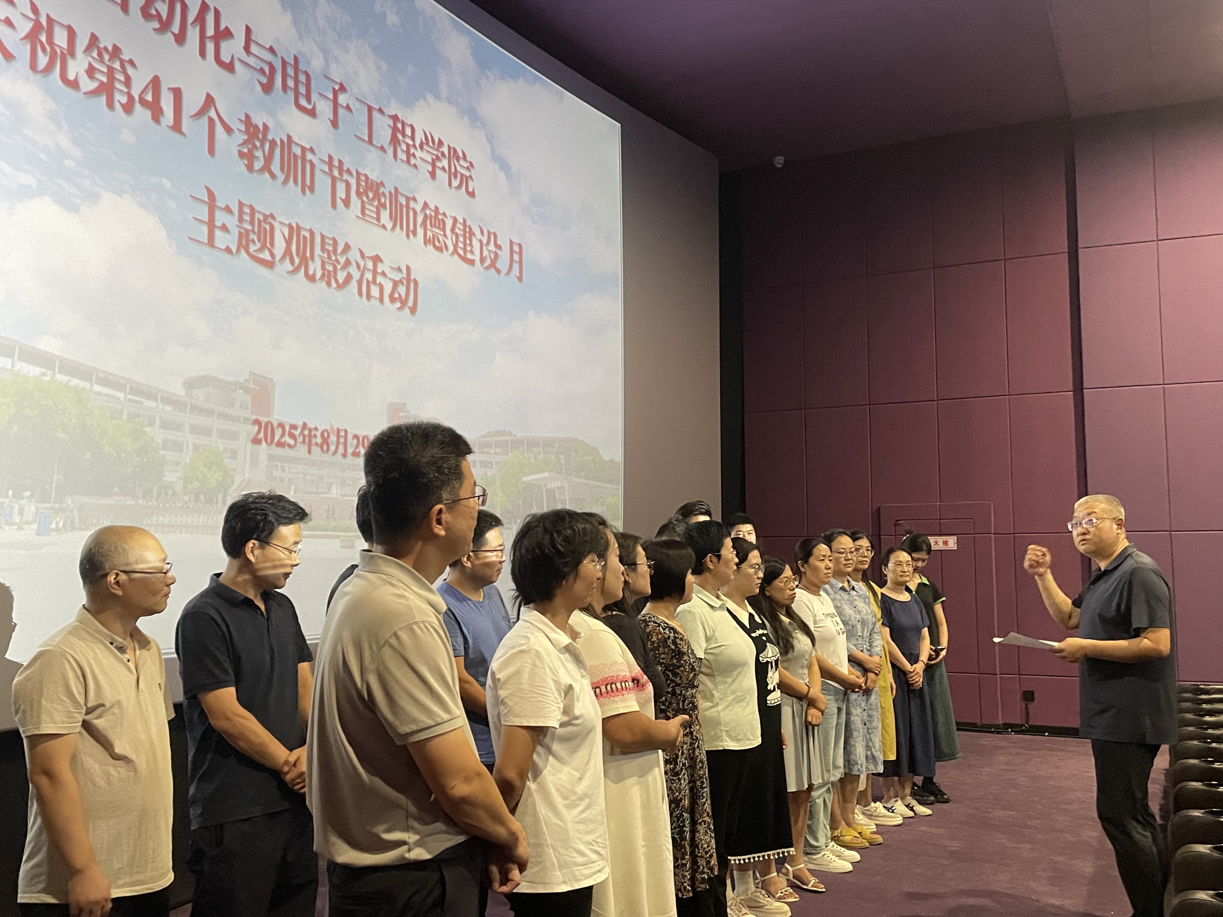 党委书记郭永作动员讲话。他指出,今年是中国人民抗日战争暨世界反法西斯战争胜利80周年,也是第41个教师节,在此时开展主题党日和师德建设月主题观影活动,既是对历史的深切回望,更是对使命的郑重践行。希望全体师生党员从历史中汲取精神养分,筑牢信仰之基,始终怀揣对国家和民族的赤诚热爱;赓续红色精神血脉,将观影感悟转化为推动教学科研、学习成长的实际行动,在岗位上履职尽责;更要铭记历史真相,以理性与担当守护和平,携手共创更美好的未来。