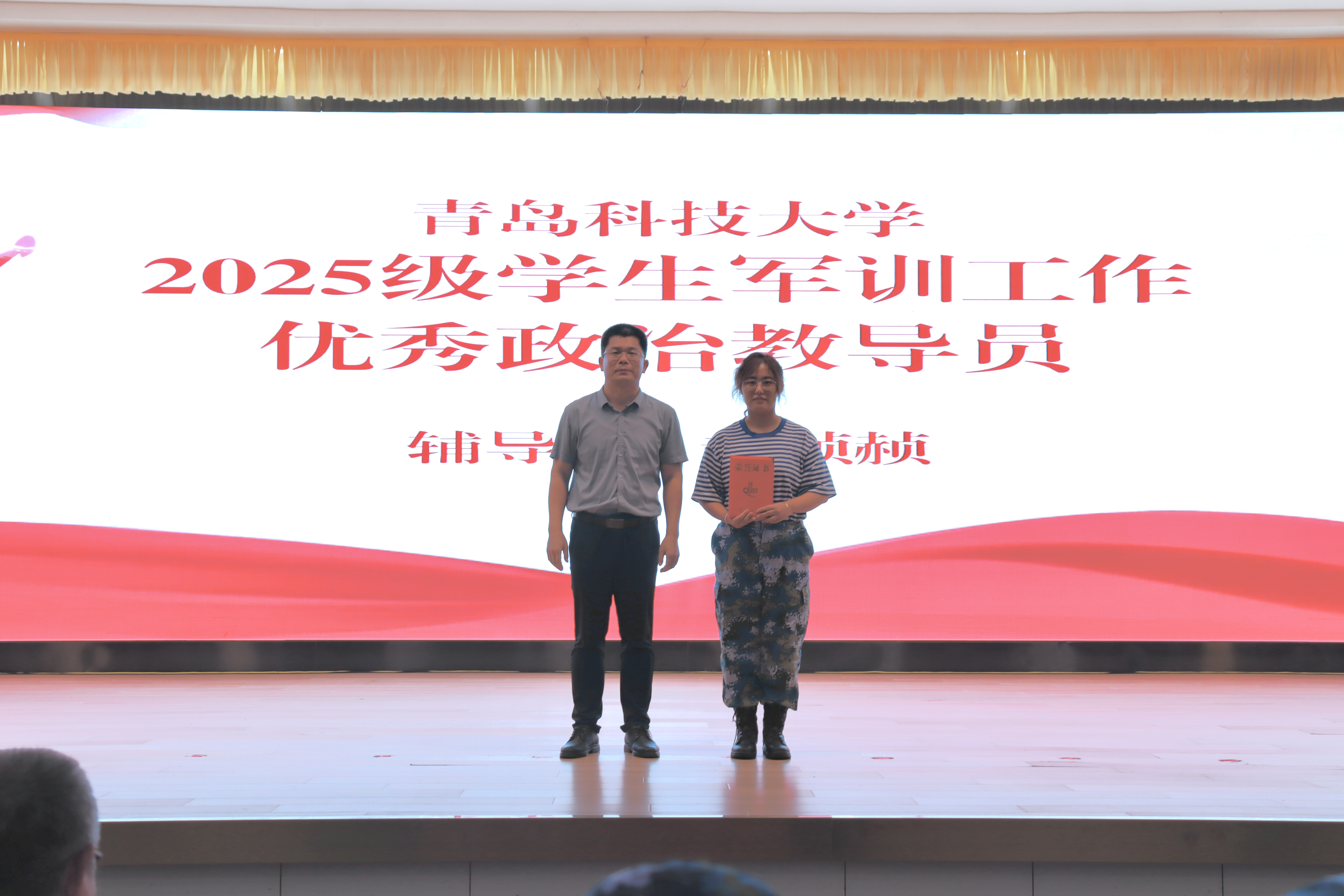“2025级学生军训工作优秀政治教导员”获奖者赵赪赪颁奖,表彰其在军训工作中的突出贡献;张伟与生宁共同为北京赛车PK10