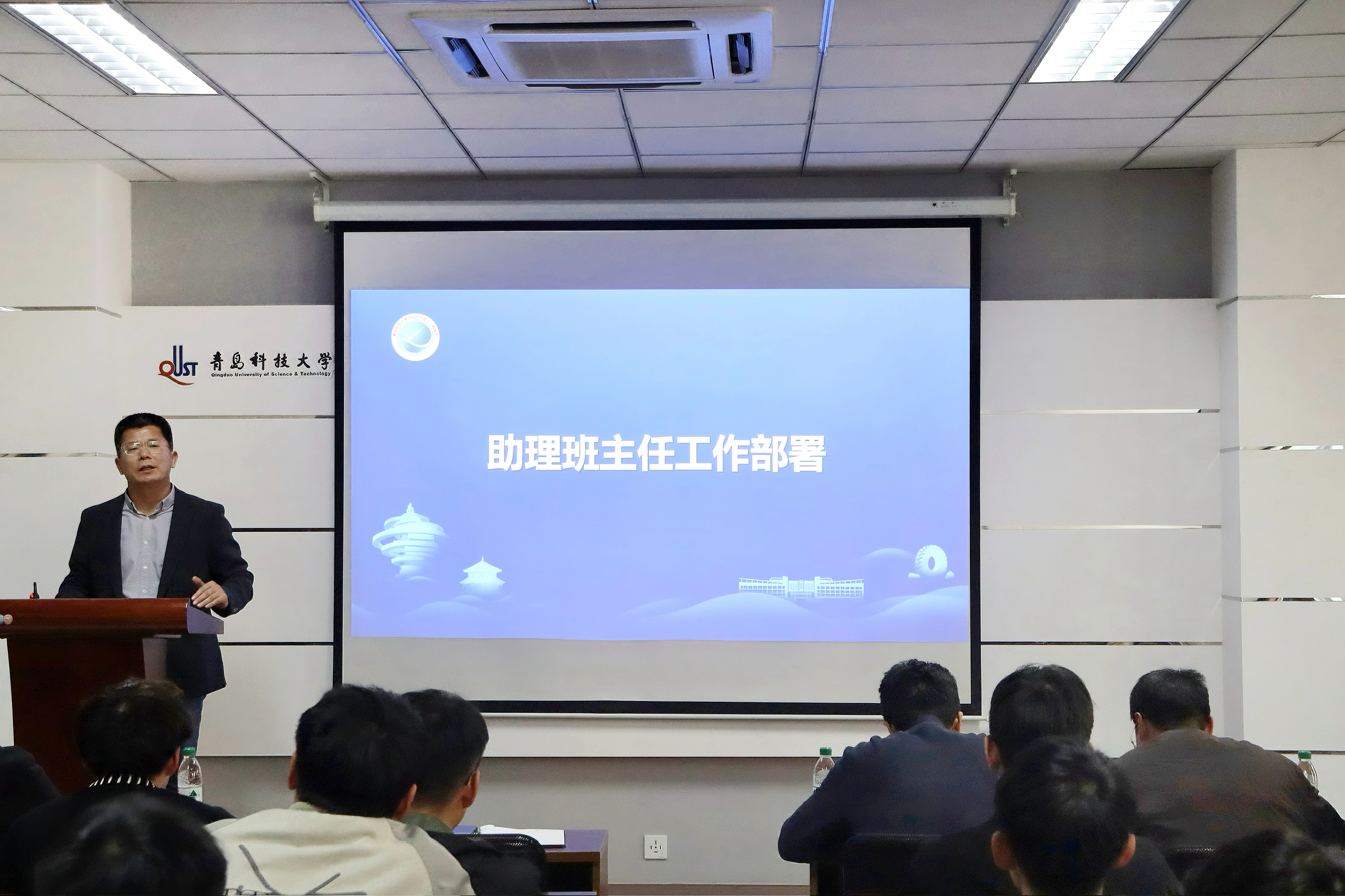 会上,郭永领学党的二十届四中全会精神并作专题讲话。他强调,要聚焦全会精神与自动化专业实践的深度融合,重点把握三个核心关键词:一是“科技自立自强”,要求全体学生深耕专业基础,筑牢技术根基;二是“高质量发展”,倡导活学活用专业知识,实现个人成长与专业发展的高质量统一;三是“团结奋斗”,深刻领悟团队协同价值,在学风建设、科研竞赛、宿舍文明等领域形成育人合力。针对学生骨干履职要求,他提出三个行动准则:争做专业学习的“带头人”,在学业进步中发挥示范引领作用;善做朋辈帮扶的“暖心人”,在学业辅导、心理支持中传递温度;勇做实践行动的“有心人”,在规划执行中锤炼责任担当。他号召全体助理班主任立足“十五五”规划关键期,将严谨、热情的自动化学子精神转化为投身社会主义现代化建设的青春实践,在时代征程中书写奋进注脚。