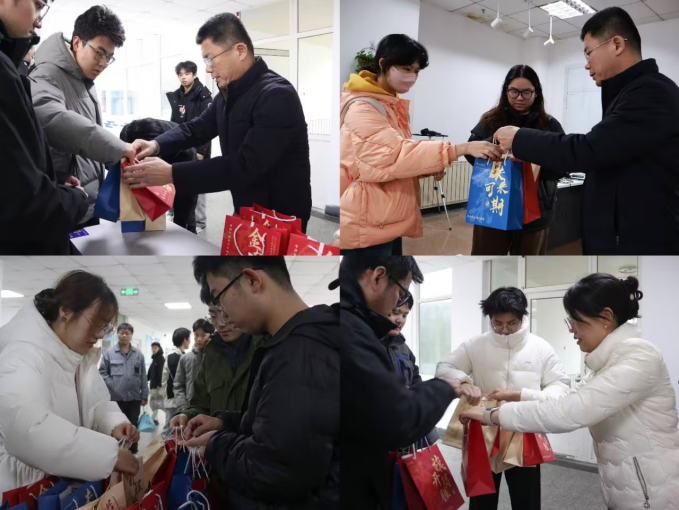 刘名森、张郁浩、全体辅导员亲手将装满关怀的考研大礼包送到每一位考研毕业生代表手中。礼包内精心准备了旺旺雪饼、薯片、士力架等能量零食,耳塞、眼罩、口罩、暖宝宝、面巾纸等实用生活用品,以及签字笔、格尺、小刀、涂卡笔等备考文具,更有承载美好祝愿的祈福香囊,每一份物品都饱含着北京赛车PK10