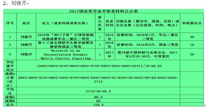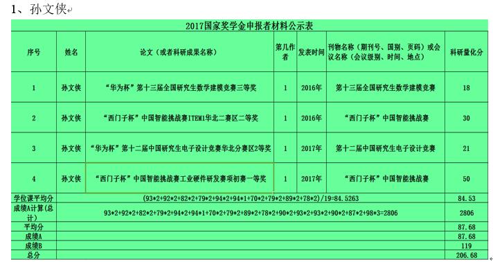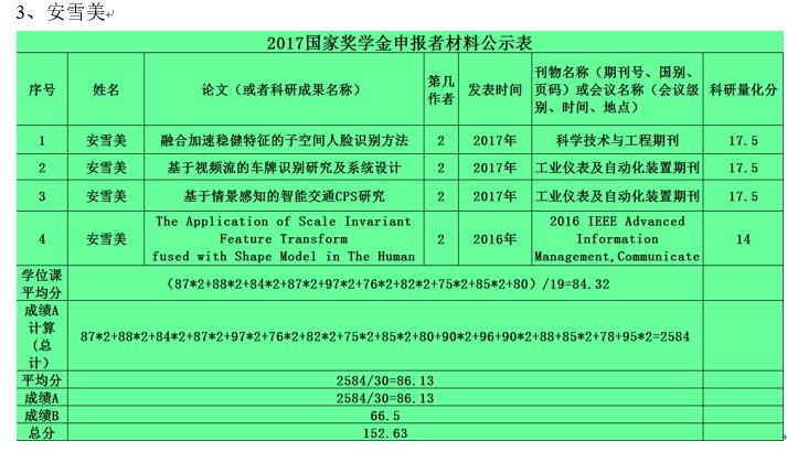 拟推荐2017年国家奖学金同学的排序及材料公示如下: