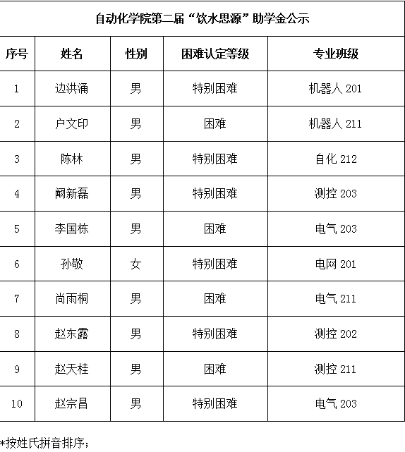 第二届“饮水思源”助学金。现予以公示,公示期为11月26日至11月28日,如有异议者,请在公示期内实名向北京赛车PK10