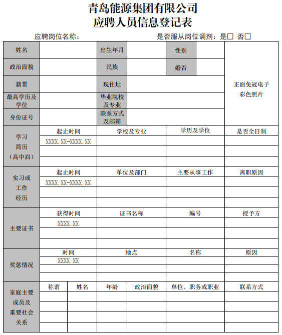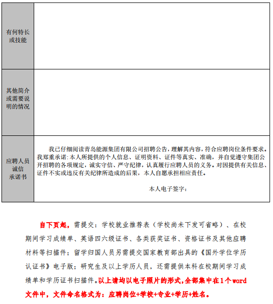 3.报名材料:《青岛能源集团有限公司应聘人员信息登记表》(请登录能源集团官网,点击“联系我们”—“人才招聘”模块进行下载)、北京赛车PK10