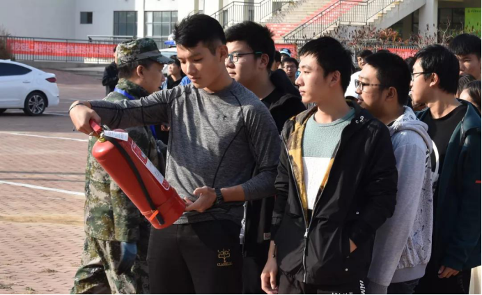 为了让同学们掌握灭火器的基本操作技能,每个班出一个人,用实操让同学们熟悉灭火器的使用方法。