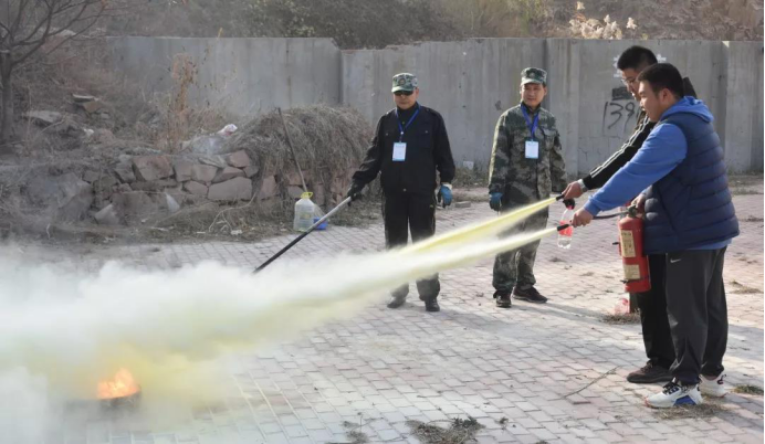 空旷地带,进行最后一项:消防器材使用教学。