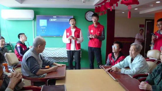 兴致之余,在义工队董天宇同学和张永健同学的领唱下,志愿者和老人们合唱《我和我的祖国》,歌声虽不像百灵鸟般美妙,但却如麻雀般淳朴。唱完后,大家不尽兴,又唱了《映山红》、《送别》、《团结就是力量》等老人们年轻时的歌曲。最后,“合唱环节”在《北京赛车PK10