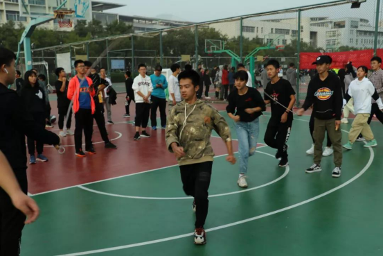 2019级各班级全部参加,共计19支队伍,每场比赛时长为三分钟,以三分钟内所跳的总个数为最终成绩。