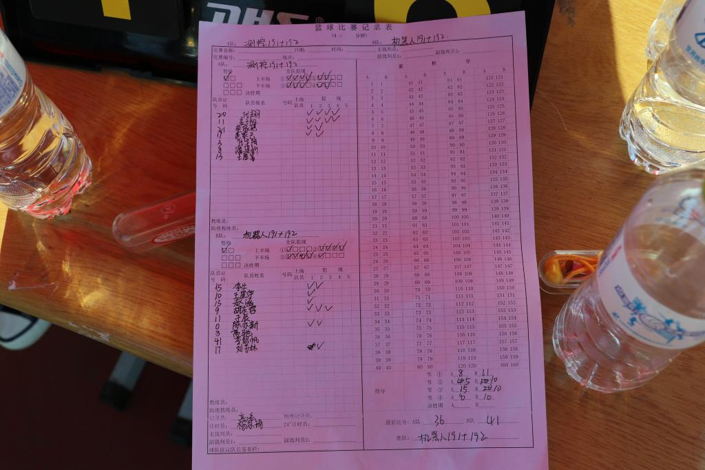 AB两队第一节比分8:11 ,第二节比分5:10,第三节比分15:10,第四节比分8:10。测控191+192联队比分落后但毫不气馁,反超对方,机器人191+192联队也不甘落后,最后机器人191+192联队以41:36的比分获胜,赢得冠军。