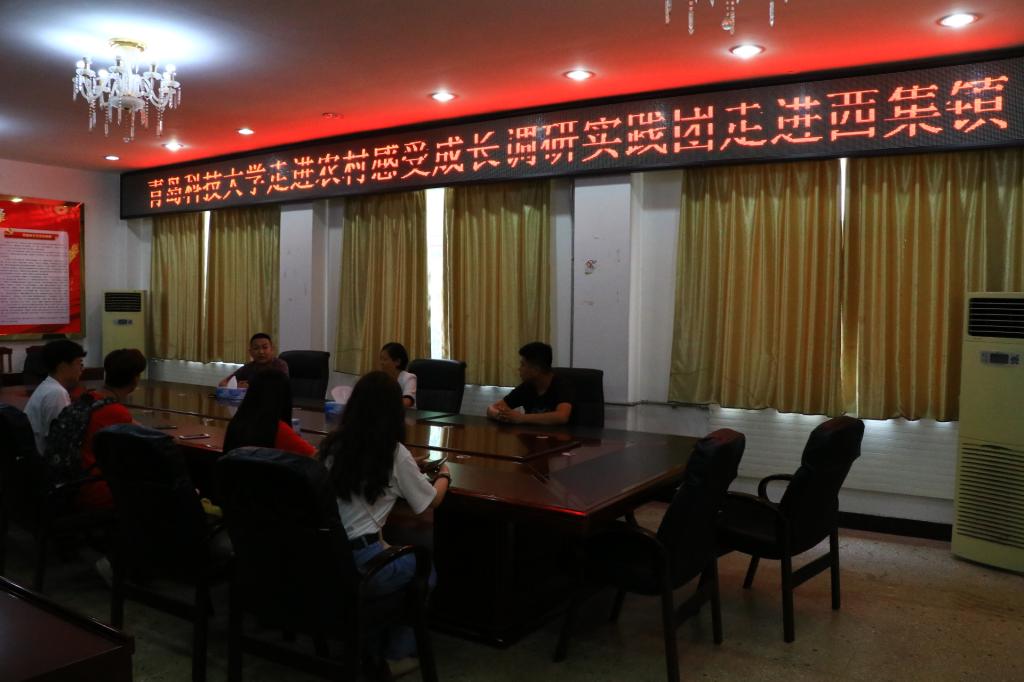 “走进农村感受成长”实践队队员们在7月29日走进枣庄市西集镇的镇政府展开调研。
