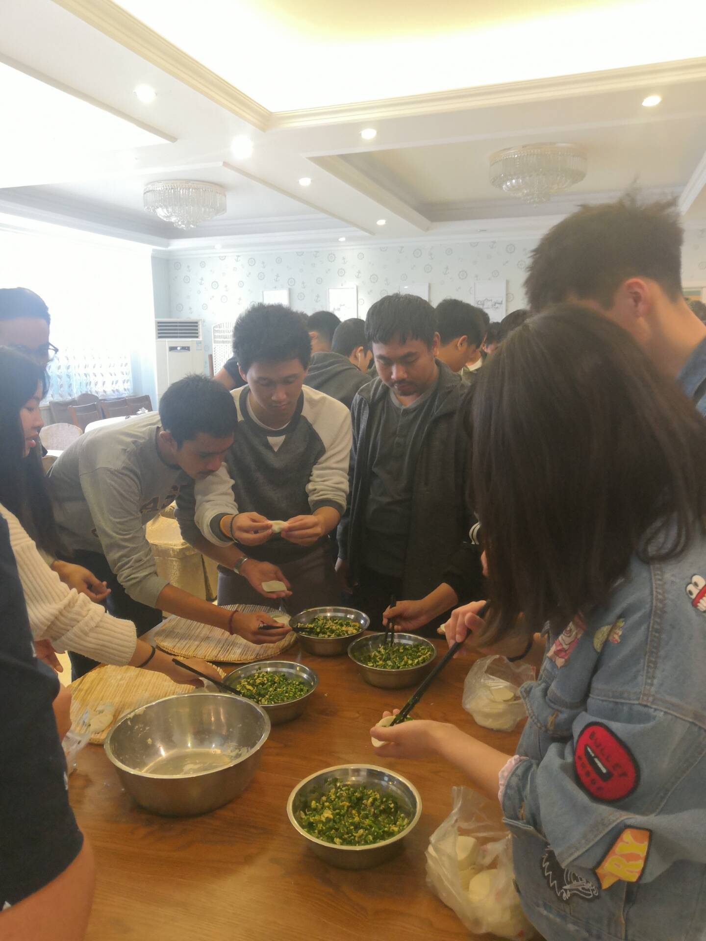 的同学们与留学生开展了一场别开生面的联谊活动——以包饺子的方式让留学生感受到家乡节日的气氛,同时借此机会促进中泰同学之间的交流,增进双方友谊。
