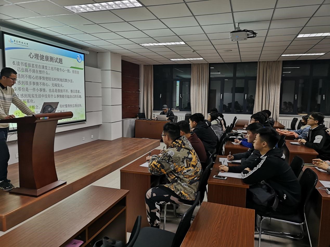 张忠进从历史中的人物性格讲起,帮助同学们了解心理状态对生活的影响,进而分析心理的力量,让大家掌握良好心理状态的奥秘,避免心理亚健康状态,明辨自己的异常心理。随后,张忠进为大家开启了心理健康测试题,通过40道简单的测试题来了解大家的心理健康程度。