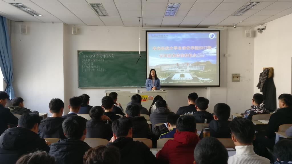分团委老师崔瑜涵、张慧敏、自动化157班王雨晨、2017级各班学习委员和重点帮扶对象100余人出席会议,会议由17级助理委员会赵帅主持。