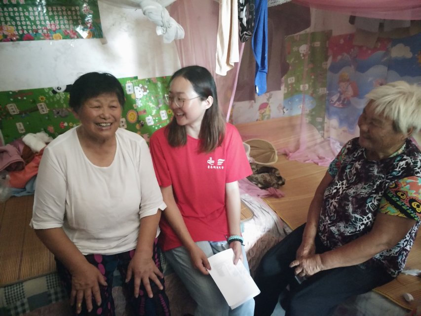 在前往建档立卡户家并与老人交流中,调研团成员了解到,老人与老伴二人相依为命,均已年过古稀。老人脚有残疾,行动不便,家中有地,却已经干不了重活。除了与老人聊天,了解老人生活,服务调研团还帮助老人打扫庭院,整理被褥等。尽管调研团成员与老人沟通存在一定的障碍,但老人的笑容表达了他对调研团成员到来的欢迎与欢喜。